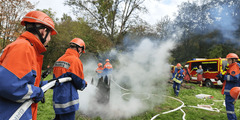 Nach dem Abendessen wurde die Jugendfeuerwehr zu einer technischen Hilfeleistung auf den Hof eines Abschleppunternehmens gerufen. Nach einem simulierten Arbeitsunfall galt es, eine Person mit Hilfe von Hebekissen zu befreien und an den Rettungsdienst zu übergeben. Eine zweite Person musste aus einem Fahrzeug gerettet werden. Eine herausfordernde und lehrreiche Übung.