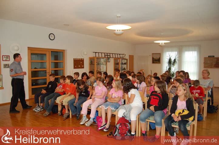 Am Freitag, den 19.06.09, gingen alle drei 4-er Parallelklassen zusammen um ca. 8.30 Uhr zur Feuerwehr. Jeder trug einen Rucksack mit einem Vesper und etwas zu Trinken. Angeführt wurden die Klassen jeweils von Frau Heß, Frau Blaschke und Frau Geiger-Janick.