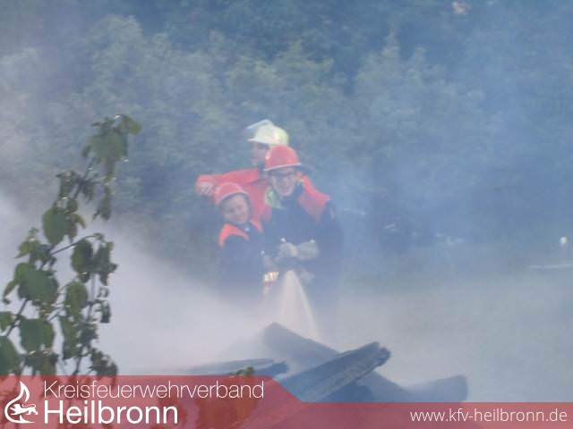 Kurz nach dem Essen gab es die erste Alarmierung für die 1. Gruppe. Auf dem Alarmfax stand Tierrettung an der Containerplatte hinter der Tankstelle. Ab auf das Fahrzeug und los ging es. Dabei mussten die Jugendlichen ein Kuscheltier durch Anleitern von Baum holen. Für die Abt. Babstadt + Treschklingen bestand der erste Einsatz aus einem Dachstockbrand. Hierzu wurde auf einem Wochenendgrundstück ein Palettenstapel angezündet und die Jugendlichen waren mit beiden LF8/6 mit einem Löschangriff beschäftigt. In Grombach bestand der erste Einsatz aus dem Alarm einer Brandmeldeanlage. Gleichzeitig erhielten die jugendlichen Kameraden bei der Objektbegehung durch den Werkleiter auch eine ausführliche Information zur Firma selbst.