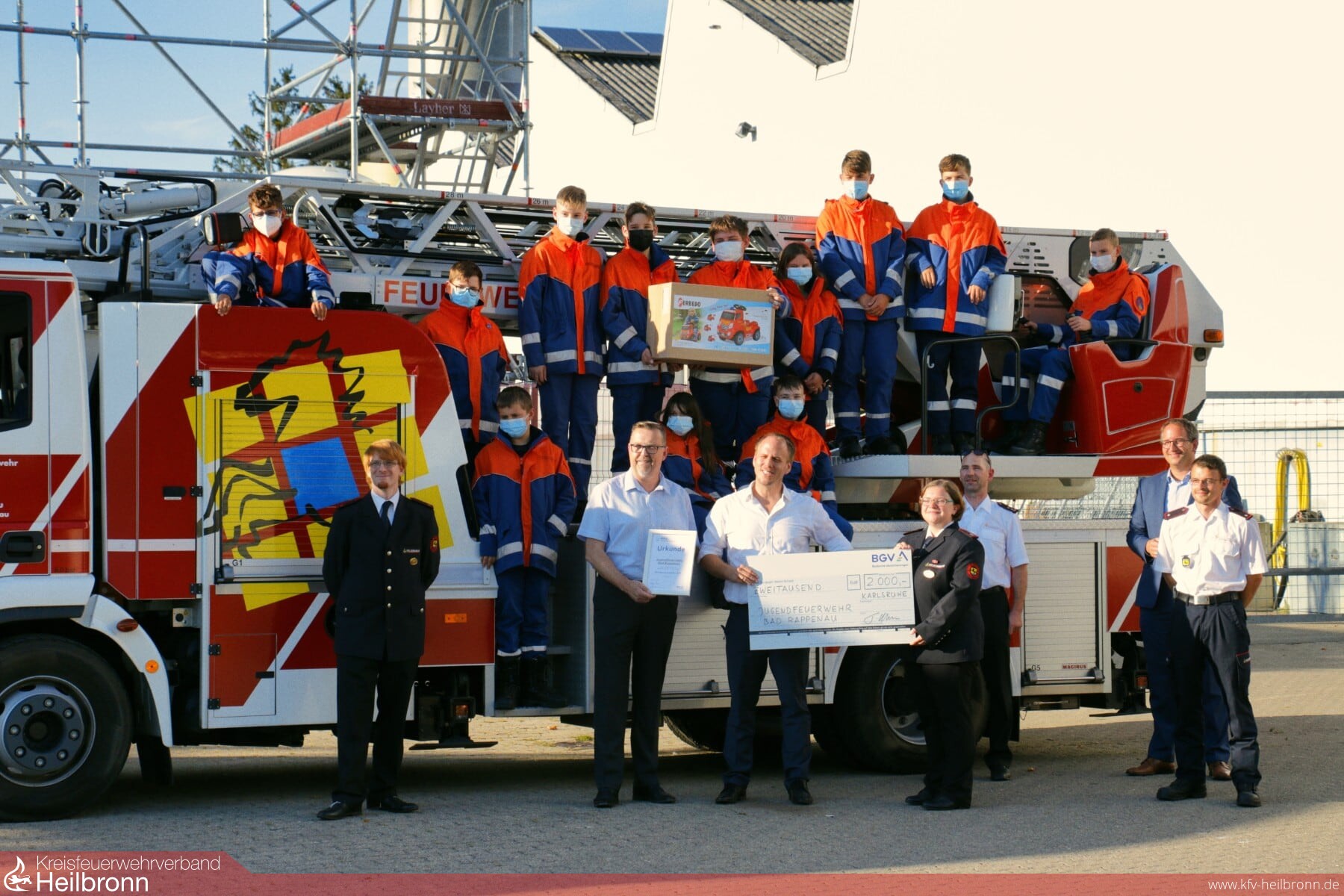 Vielleicht erinnert ihr euch noch an unsere Teilnahme am BGV Nachwuchshelden Förderwettbewerb. Die Jugendfeuerwehr Bad Rappenau hat bei diesem Wettbewerb einen Jury-Preis, in Höhe von 2.000€, gewonnen. Die Jury war prominent besetzt mit unter anderem Dr. Frank Knödler, Präsident Landesfeuerwehrverband Baden-Württemberg.