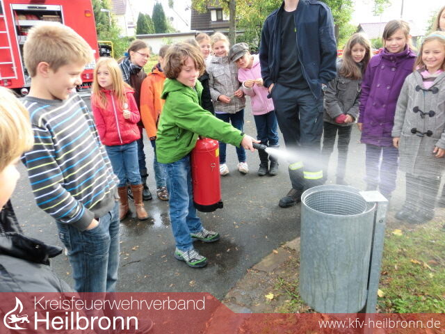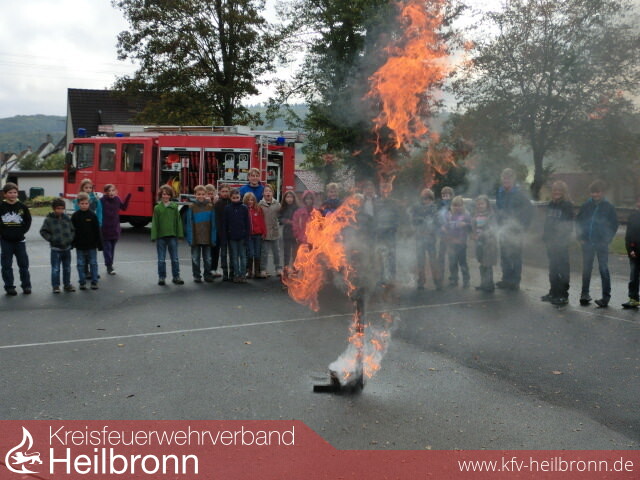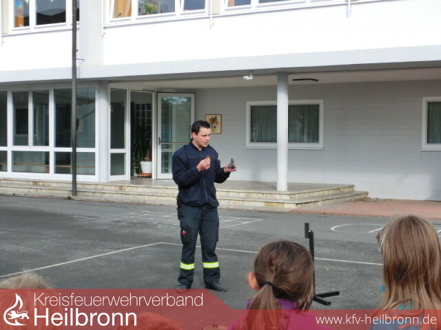Am 13. Oktober fand der \"Landesweite Helfertag\" an Schulen statt. Die Feuerwehr Roigheim entschied sich, wie letztes Jahr teilzunehmen. Sinn und Zweck dieses Tages war den Kindern das richtige Verhalten, wenn es Brennt, zu erklären. So konnte Ferdinand Speiser und Stefan Englert den Klassenstufen 3 und 4, der Grundschule Roigheim, einen ganzen Vormittag erklären, wie sie sich zu verhalten haben, wenn es \"Brennt\". Dazu gehört z.B. den Notruf richtig abzusetzen, wie habe ich mich zu Verhalten. Außerdem wurde den Kindern der richtige Umgang mit einem Feuerlöscher beigebracht. Durch eine Simulation eines Fettbrandes konnten die Schüler wie auch die Lehrer genau sehen was passiert, wenn man einen Fettbrand mit Wasser löschen möchte. Denn Kinder machte es sichtlich Spaß und wenn es nach ihnen ginge, solle dieser Tag nie enden.