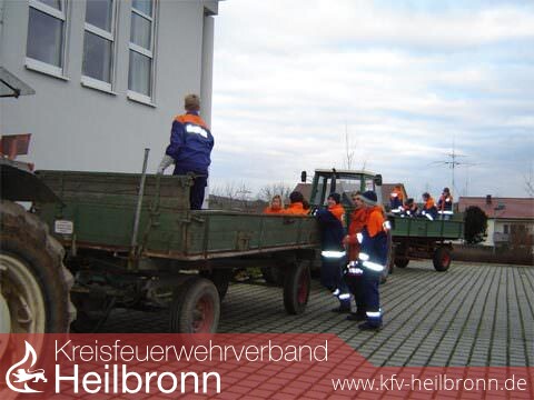 20 Jugendliche, 4 Jugendleiter und ebenfalls 4 Schlepperfahrer machten sich ab 9.30 Uhr auf den Weg durch die Straßen. Aber kaum angefangen musste auch schon eine Zwangspause eingelegt werden: alle Hänger voll und der Häckselplatz hat noch zu. Eine Gruppe musste sogar schon nach nur einer Straße „Wagen voll“ melden.