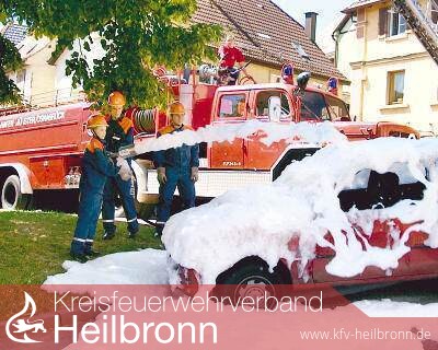 Foto:Sogar mit Schaum durften die Mitglieder der Hardthausener Jugendfeuerwehr bei der Schauübung hantieren: In der Realität könnte so ein Unfallwagen ja Feuer fangen. (Fotos: Agentur Kochertal)
