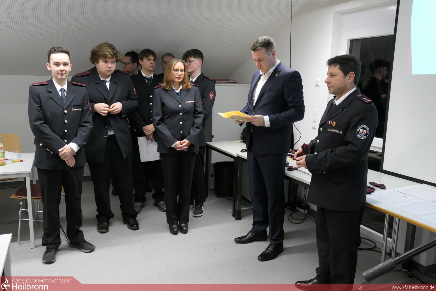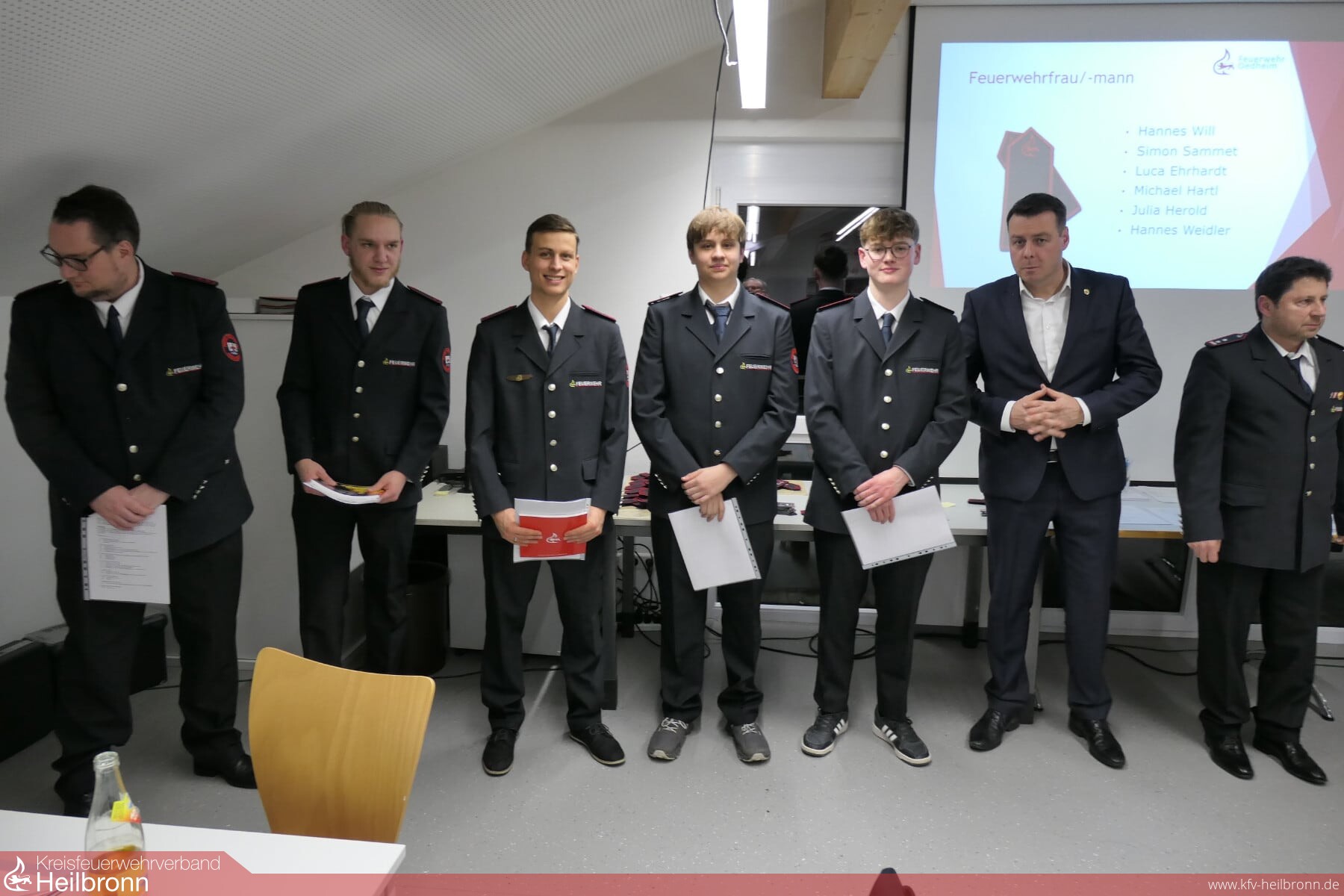 Bei der Hauptversammlung der Freiwilligen Feuerwehr Oedheim kann Kommandant Sven Kübler zusammen mit Bürgermeister Matthias Schmitt und seinem Stellvertreter Bernd Ehrhardt Julia Herold zur Stv. Jugendwartin der Jugendfeuerwehr bestellen. Julia Herold wurde bei der Jahreshauptversammlung der Jugendfeuerwehr einstimmig von den Jugendlichen gewählt. Jonas Hofmann kann erneut zum Zugführer des 3. Zuges bestellt werden.