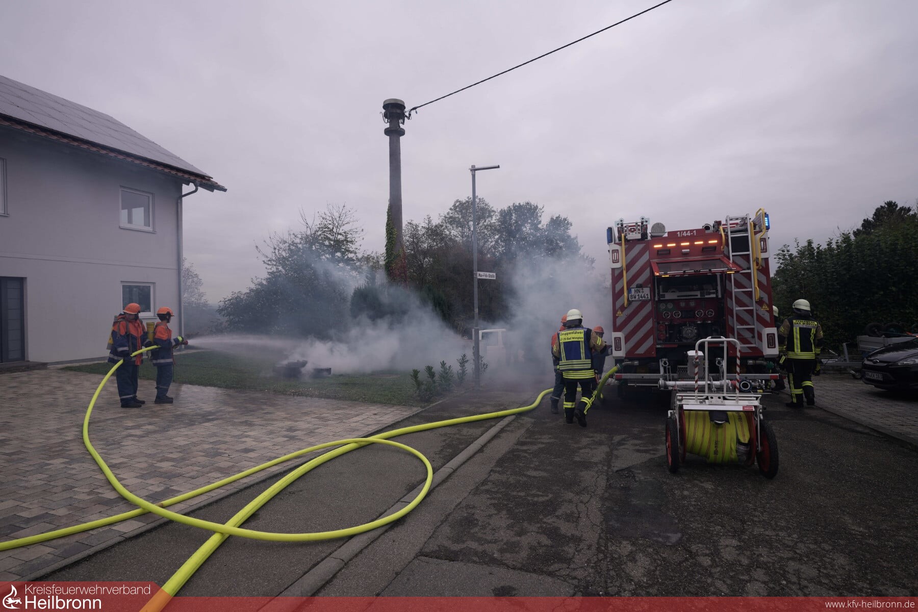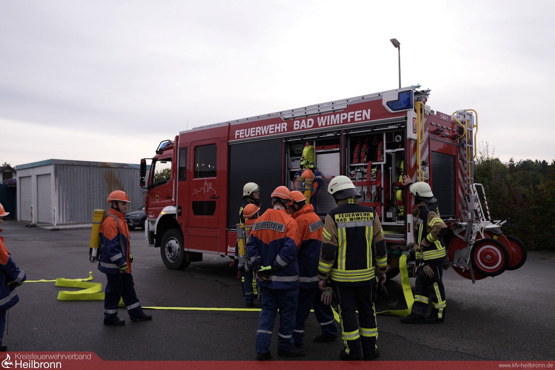 An einem Wochenende im Herbst von Freitag ab 18:00 Uhr bis Sonntag um 10:00 Uhr verbrachten acht Jugendliche der Jugendfeuerwehr der Freiwilligen Feuerwehr Bad Wimpfen mit ihren Leitern, sowie einigen Helfern im Feuerwehrgerätehaus am Steinweg. Natürlich waren noch der eine oder andere aktive Feuerwehrkamerad in die „geheimen Einsatzpläne“ eingeweiht. Zu Beginn ihrer 36 Stundenschicht wurden die Mitglieder der Jugendfeuerwehr in Gruppen eingeteilt. Außerdem gab es eine Einweisung im Funkraum und in den Fahrzeugen. So vorbereitet konnten die „Einsätze“ kommen, und sie kamen. Die Schlafplätze waren eingerichtet, die Küche war nach dem gemeinsamen Hamburgeressen aufgeräumt als um 21:21 Uhr der Erste Einsatz über Telefon einging. Der Rettungsdienst hatte die Feuerwehr angefordert, da im Kurwäldchen beim Sportplatz eine verletzte Person aus unwegsamen Gelände gerettet bzw. getragen werden musste. Nach einer relativ ruhigen Nacht rückte unsere Jugendfeuerwehr am Samstag um 7:20 Uhr zum ev. Gemeindehaus aus. Ein Nachbar hatte einen Rauchwarnmelder gehört. Es wurden alle Räume erkundet, und in einem Raum fand der Angriffstrupp einen defekten Rauchmelder. Um 10:40 Uhr fuhren die Einsatzkräfte zu einem asphaltierten Feldweg. Durch einen technischen Defekt verlor der PKW eines Grundstückbesitzers der auf dem Weg zu seinem Gartengrundstück war Öl. Die „Ölspur“ wurde beseitigt. Gerade hatten die Jugendlichen ihre Gerätschaften in den Fahrzeugen aufgeräumt und fuhren in Richtung Feuerwehrgerätehaus kam über Funk der nächste Einsatz. Gemeldet war ein „Containerbrand“ vor einem Haus und zusätzlich wurde noch eine Person vermisst. Mit zwei C-Rohren hatten die Einsatzkräfte das Feuer schnell unter Kontrolle und kurz darauf gelöscht. Die vermisste Person fand ein Suchtrupp in der benachbarten Werkstatt. Diese wurde aus dem Gebäude gebracht und dem Rettungsdienst übergeben. Um 15:40 Uhr eilten die Feuerwehrfrauen und Männer zu einer „Technischen Hilfeleistung“ zu einem Landwirtschaftliches Anwesen. Eine Person war unter einer Maschine eingeklemmt. Mit dem Einsatz von Hebekissen und Unterbaumaterial konnte die Person befreit und dem Rettungsdienst übergeben werden. Zwei Stunden später meldeten Anwohner einen „Großbrand“ in Bad Wimpfen Hohenstadt. Das alte Feuerwehrgerätehaus „brannte“ und drei Personen wurden vermisst. Zwei der drei vermissten Personen konnten über die Drehleiter gerettet werden. Die dritte Person rettete der Angriffstrupp unter Atemschutz aus dem „verrauchten“ Gebäude. Während des Einsatzes wurde eine Riegelstellung zum Schutz des Nachbargebäudes aufgebaut. Zu einer „Personensuche“ rückten die Jugendlichen um 21:07 Uhr aus. Mit Hilfe von Lampen und Wärmebildkameras konnten die neun vermissten Personen, schnell gefunden werden. Nachdem die Gerätschaften gereinigt und aufgeräumt, man noch gemeinsam zu Abend gegessen hatte war um 22 Uhr Nachtruhe! Aber nicht lange. Am Sonntagmorgen um 01:49 Uhr „brannte“ es neben dem Naturbildungshaus. Etwas schläfrig, aber voller Tatendrang meisterten die jungen Feuerwehrleute auch diese gestellte Aufgabe. Anschließend krochen alle nochmals in ihre Schlafsäcke. Nach dem Frühstück und dem anschließenden aufräumen, endete dieser besondere Dienst mit den unterschiedlichsten „Einsätzen“, Betriebssport, Übungsdienst, Fahrzeug und Gerätehauspflege am Sonntagmorgen um 10:00 Uhr.