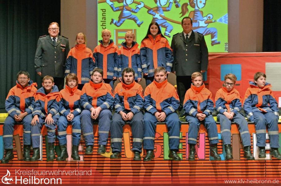Nach der musikalischen Einstimmung durch Mitglieder des Spielmannszugs der Feuerwehr aus Bad Friedrichshall, riefen die Sprecherinnen der Offenauer Jugendfeuerwehr Sophie Weber und Tabea Frank den Gründer und Mentor bis zum heutigen Tag, Franz Rittenauer auf die Bühne. Unten saß viel Publikum, die Eltern der Kinder und Jugendlichen, viele aktive Kollegen der Offenauer Wehr, Abordnungen der Kollegen aus Bad Friedrichshall, Bad Wimpfen und Gundelsheim, der Kreisjugendwart, Vertreter der Gemeinde und selbstverständlich die Hauptpersonen: 13 aktuelle Vertreter der Jugendfeuerwehr.