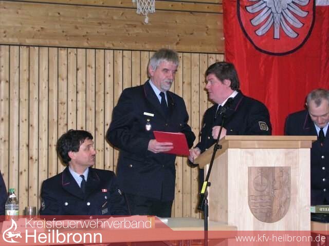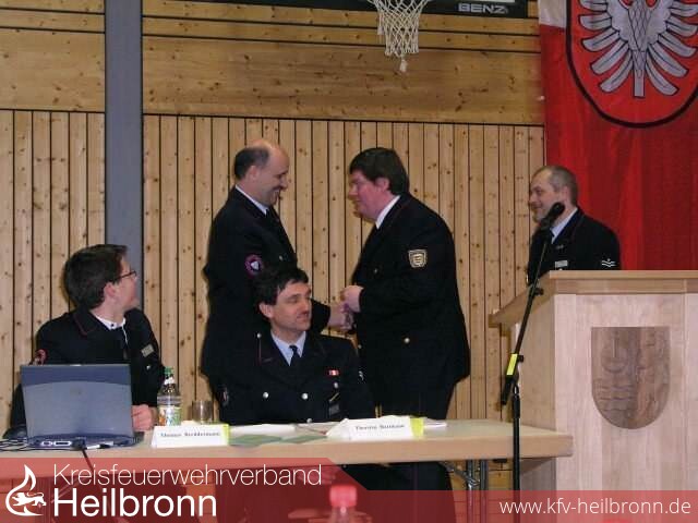 „Als Kreisbrandmeister haben Sie für die Belange der Jugendfeuerwehr stets ein offenes Ohr“, lobte der stellvertretende Landesjugendfeuerwehrwart Kreisbrandmeister Hans-Wilhelm Hansmann. Mit seinen Bemühungen habe Hansmann wesentlich dazu beigetragen, „dass die Jugendfeuerwehren des Stadt- und Landkreises Heilbronn heute einen Spitzenplatz im Regierungsbezirk Stuttgart einnehmen,“ unterstrich Andreas Rudlof. Besonders lobte er die Beharrlichkeit und Hartnäckigkeit Hansmanns, mit welcher er den Kommandanten stets klarmache, wie wichtig eine eigene Jugendfeuerwehr sei. „Alles in allem: Ein Kreisbrandmeister wie ihn die Jugendfeuerwehren sich wünschen“, so der stellvertretende Landesjugendfeuerwehrwart abschließend.