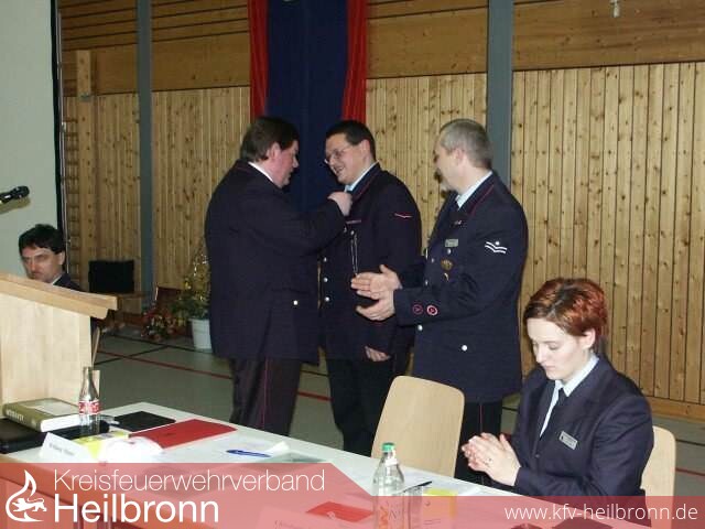 Die Ehrennadel der Jugendfeuerwehr Baden-Württemberg in Silber wurde an Alexander Blind (Ilsfeld), Wolfgang Henn (Talheim) und Matthias Walter (Flein) verliehen.