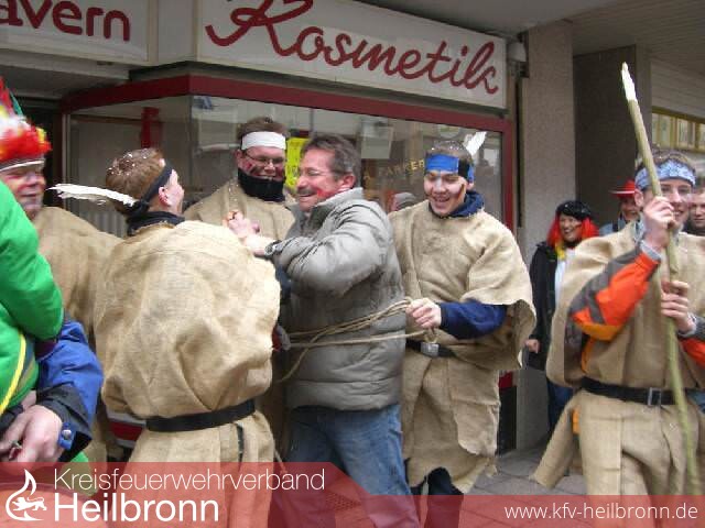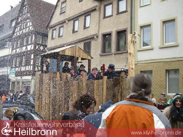 Am vergangenen Sonntag stand schließlich der zweite Umzug an. Bereits zum zweiten Mal nahm man dieses Jahr am Leiergassenumzug teil. Da der Umzug unter dem Motto „Wilder Westen“ stand, wurde in unzähligen Arbeitsstunden ein fahrendes Fort gebaut, von dem aus die Kavallerie die anstürmende Indianerschar mit einer Konfetti-Kanone bekämpfte. Musik und Bonbons sorgten für die gute Laune der zahlreichen Zuschauer, die sich im Anschluss an den Umzug im „Westerndorf“ in der Leiergasse vergnügten.