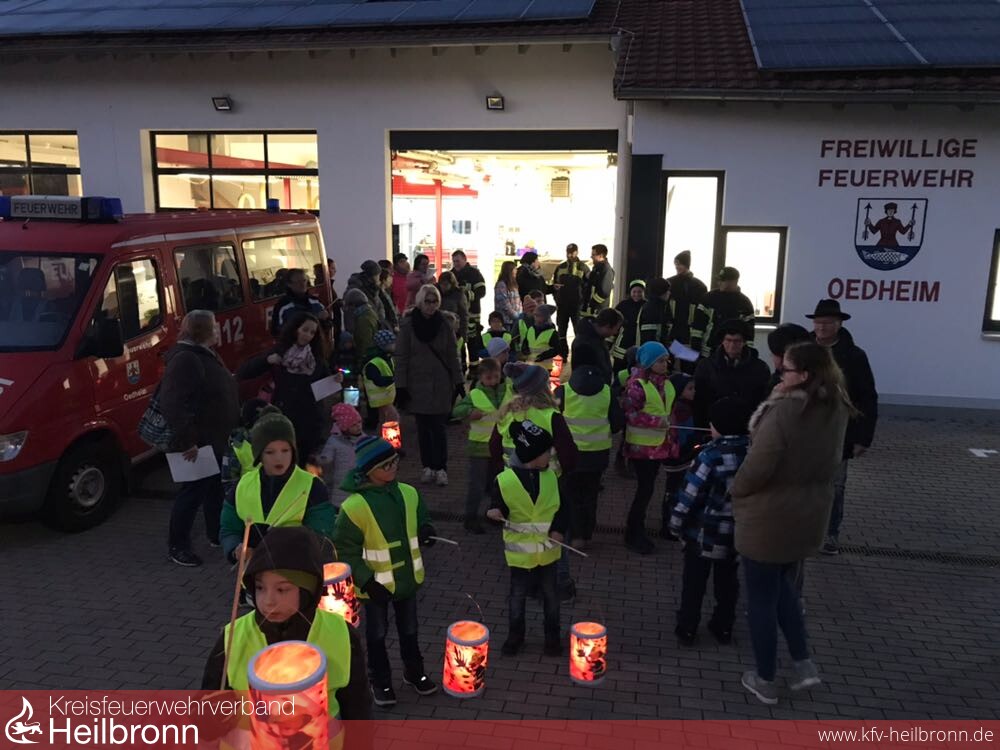 Angefangen hat es am 14. November 2017 mit dem Laternenumzug, der gemeinsam mit den Familien durchgeführt wurde. Die Kinder konnten es kaum erwarten mit ihren selbst gebastelten Feuerwehrlaternen durch die Straßen Oedheims zu ziehen und bunte Laternenlieder zu singen. Im Anschluss fand ein gemütlicher Teil, mit Kinderpunsch und Glühwein, sowie Würsten mit Brötchen statt. Es war ein schönes und gut besuchtes Fest.