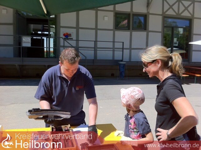 Das Programm der Feuerwehr bestand dabei aus diversen Spielen, einem Hindernisparcours mit der Wärmebildkamera sowie Vorführungen zur Fettexplosion. Auch ein eigenes Stück selbstbedruckter Feuerwehrschlauch konnte mitgenommen werden.