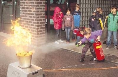 Bild: Der Besuch bei der Feuerwehr ist beliebt bei vielen Kindern. Der Tag ist spannend, dürfen sie doch auch versuchen, Flammen zu ersticken. (Foto: Stefanie Pfäffle)