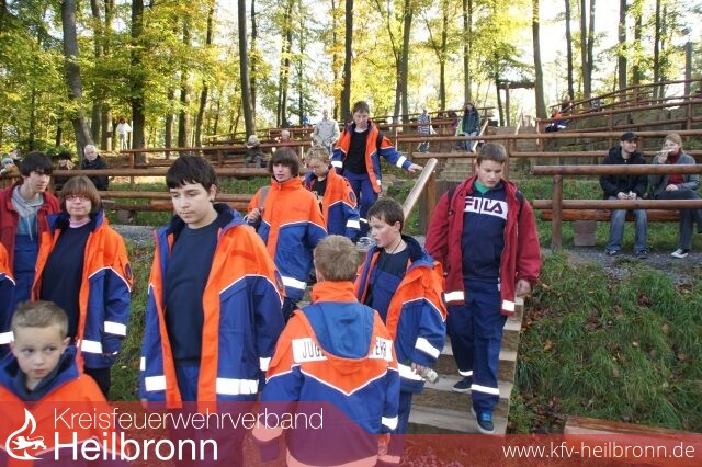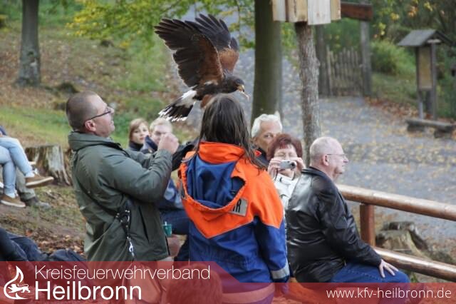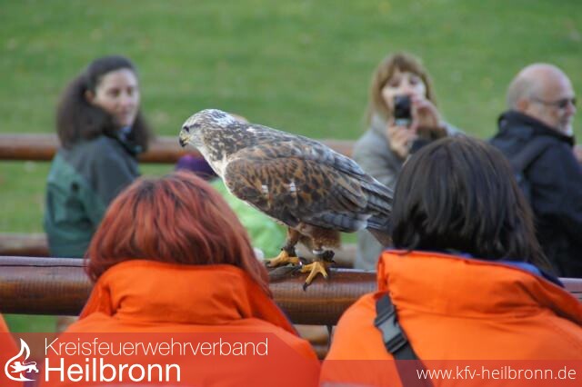 Ein besonderes Highlight war dann am nächsten Tag der gemeinsame Besuch des Freizeit- und Erlebnispark /Wildparadies in Tripsdrill. Egal ob Mammut, G\' sengte Sau oder die Badewannenfahrt zum Jungbrunnen, ein jeder hatte hier riesigen Spaß. Auch bei der Falknervorführungen im Wildparadies waren die JF\' ler ganz gespannt, sieht man die großen Greifvögel in der Regel nicht so nah vor sich oder darf sie sogar auf dem Arm landen lassen. Abgerundet wurde dieser actionreiche Tag mit einem Grillfest in der Feuerwehr. Bei Steaks und Grillwürsten und selber gemachten Pommes aus Lauffener Kartoffeln, gab es hier noch bis in die Nacht hinein die Möglichkeit, die Kameradschaft zu pflegen und neue Freundschaften zu knüpfen.