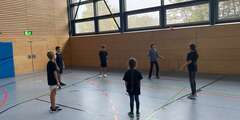 Nach einer kurzen Aufwärm- und Einspielrunde ging es mit der offiziellen Begrüßung los. Anschließend starteten die ersten Spiele unter dem Motto „Jeder gegen Jeden“. Zunächst traten somit alle Gruppen innerhalb einer Altersklasse gegeneinander an.