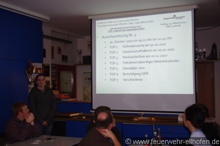 An Freitag, 25. Februar.2011, fand die Jahreshauptversammlung der Jugendfeuerwehr im Feuerwehrhaus in Ellhofen statt. Eingeladen waren neben allen Kameradinnen und Kameraden und dem Betreuerteam auch Kommandant Ralf Hemberger, der stlv. komm. Kommandant Friedrich Arnold, sowie Bürgermeister Wolfgang Rapp.