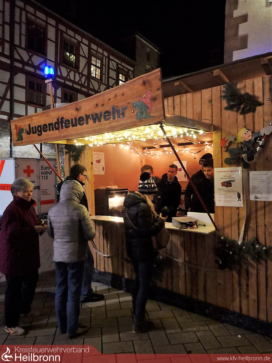 In Neuenstadt findet jedes Jahr am zweiten Adventswochenende der Weihnachtsmarkt in der Innenstadt statt. Seit über zehn Jahren ist hier auch die Jugendabteilung der Feuerwehr mit einem Stand vertreten.