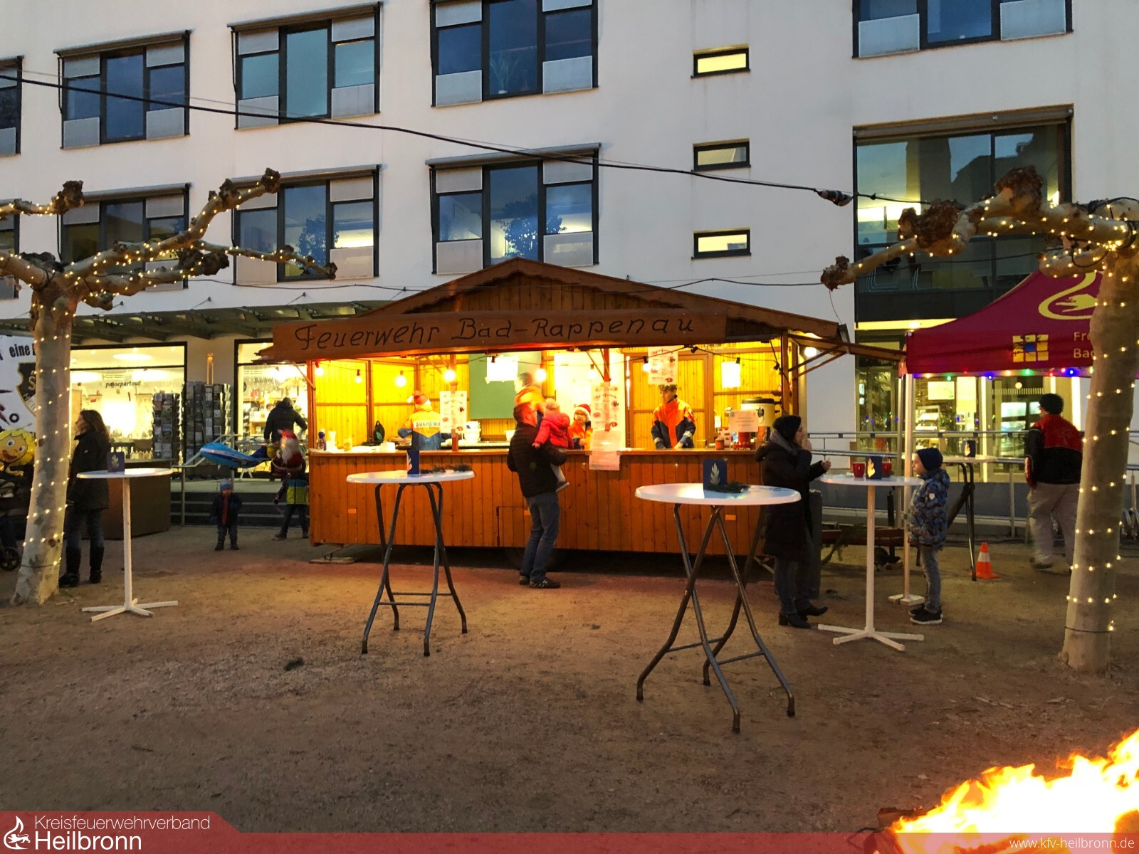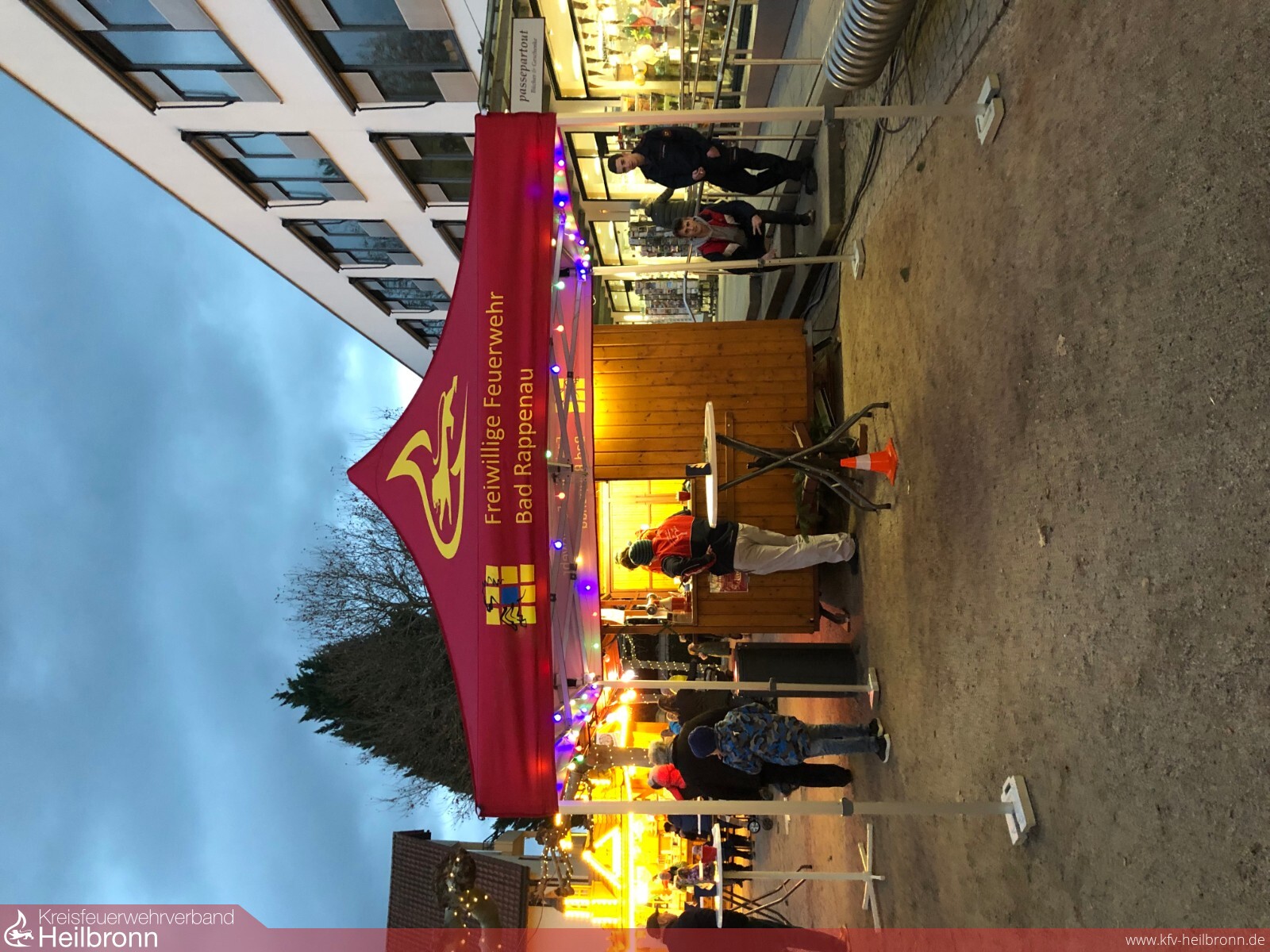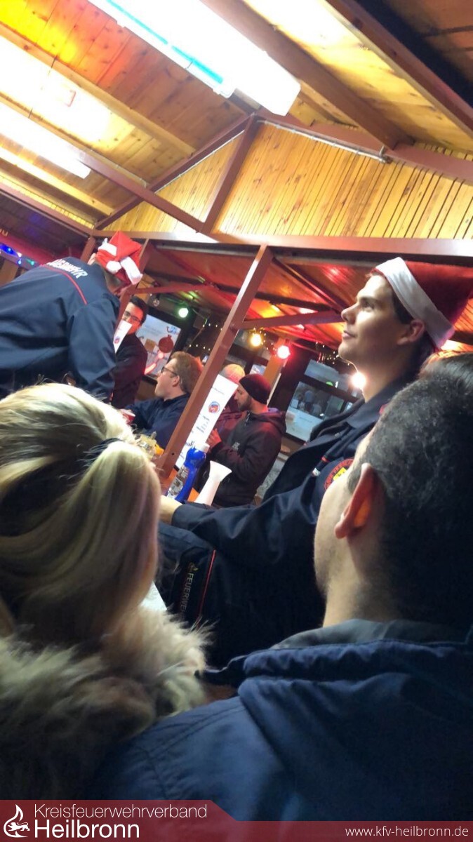 Aus dem Verkaufsstand der Abteilung Bad Rappenau wurden heiße Getränke (Tee, Punsch und Glühwein) angeboten. Abgerundet wurde das Angebot durch selbstgemachte Waffeln, für welche die jeweils auf der Schicht anwesenden Jugendlichen den Teig gemacht hatten. Zum gemütlichen Verweilen lud der weihnachtlich dekorierte Feuerwehr-Pavillon samt Stehtischen ein. In insgesamt acht Schichten (je ein Betreuer und 3-4 Jugendliche) über zwei Tage verteilt konnte somit ein beachtliches Ergebnis für die Kasse der Jugendfeuerwehr erzielt und die Kameradschaft gestärkt werden. Auch das schlechte Wetter am Freitagabend konnte der guten Stimmung keinen Abbruch tun, da der Gefahrgutzug der Feuerwehr Bad Rappenau nach seiner Übung noch am Stand vorbeischaute und sich stärkte.