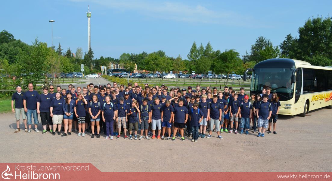 Am Samstag, den 27.07.2014 um 08:00 Uhr trafen sich Mitglieder aller 8 Jugendgruppen der Jugendfeuerwehr Bad Rappenau, um sich auf den Weg in den Holiday Park zu machen. Nachdem die zwei Reisebusse der Fa. Hofmann alle 66 Jugendfeuerwehrkameraden und die 32 Jugendbetreuer in den Ortsteilen abgeholt hatten ging die Fahrt auf direktem Weg nach Hassloch. Pünktlich um 09:30 Uhr trafen wir auf dem Parkplatz des Holiday Parks ein. Die Reisegruppe wurde von drei Jugendlichen begleitet, die am Preisrätsel der Feuerwehr zur Veranstaltung Autoaction teilgenommen hatten und als Gewinner gezogen wurden. Ziel des Preisrätsels war es, Jugendliche für die Jugendfeuerwehr zu interessieren und an die Jugendgruppen heranzuführen.