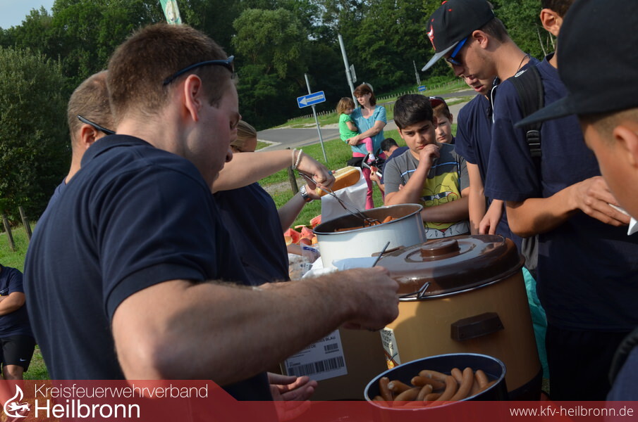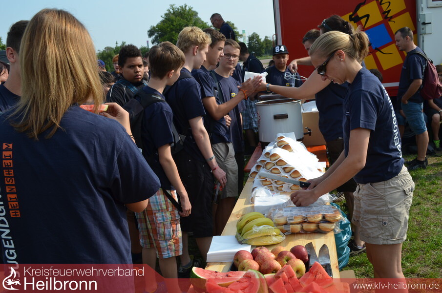 Ein Versorgungsteam war bereits etwas früher mit einem Feuerwehrfahrzeug gestartet. Kommandant Felix Mann und seine Freundin, sowie der Stellvertretende Abteilungskommandant von Babstadt Kai Schuster mit seiner Frau hatten für die 98 Teilnehmer bis zu deren Ankunft bereits ein Frühstück vorbereitet. Mit heißen Würstchen, Getränken, Äpfeln und Melonen konnten sich die Jugendgruppen stärken und für den anstrengenden Tag im Holiday Park vorbereiten. Alle Teilnehmer möchten sich auf diesem Weg bei dem „Versorgungsteam“ für das tolle Frühstück nochmals herzlich bedanken.