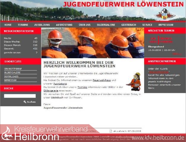 Der Internetauftritt der Jugendfeuerwehr wurde ebenfalls mit dem Content Management System (CMS) TYPO3 umgesetzt und beinhaltet ein Terminmodul und Gästebuch.