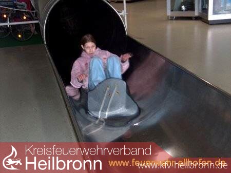 Viel Spaß bereitete eine Rutschpartie aus einem der Flugzeuge auf dem Dach hinab in die Halle, ebenso wie eine alte ausgestellte Feuerwehrdrehleiter DS25 der Fa. Metz von 1928.
