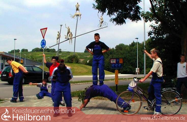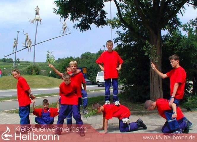 Das Hölderlin-Kunstwerk nachgestellt von den Jugendfeuerwehren