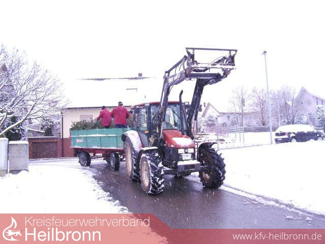 Zu der bereits traditionellen Sammlung der ausgedienten Weihnachtsbäume in Pfaffenhofen trafen sich die Jungen und Mädchen der Jugendfeuerwehr samt ihren Betreuern am vergangenen Samstag, dem 12. Januar 2013. Durch verteilte Flyer, Plakate und Anzeigen in der Rundschau wurde die Aktion mehrmals angekündigt. Ab 10.30 Uhr ertönten weit hörbare Sirenen und Hupen, die auch den Letzten aus dem Schlaf rissen, um noch schnell den Baum aus dem Fenster zu werfen. Auch der stetig anhaltende Schneefall hinderte die beiden Schlepper mit Anhängern nicht daran, Straße für Straße zu durchkämmen und die bereitliegenden Christbäume einzusammeln. Mit den vollbeladenen Fahrzeugen ging es schließlich auf den Häckselplatz der Firma A+S Natur Energie, wo die unzähligen Bäume entsorgt werden konnten.