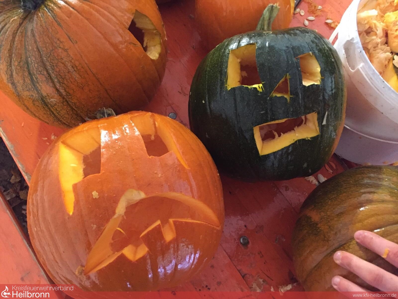 Damit an Halloween die richtige Stimmung abends auch in Gemmingen aufkommt, schnitzten die Jugendlichen der Jugendfeuerwehr Gemmingen-Stebbach mehrere Kürbisse. Anlässlich des 1250-jährigen Jubiläums der Gemeinde wird der Schlosspark nun durch viele erleuchtete Kürbisse verziert.
