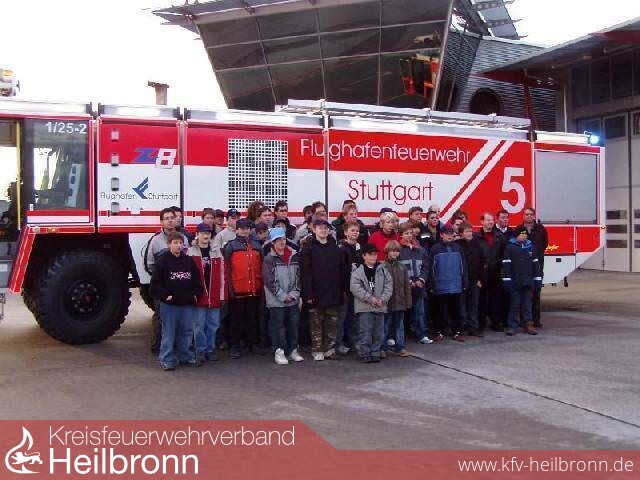 Anschließend ging es mit einem Zwischenstopp fürs Mittagessen auf direktem Weg zum Flughafen Stuttgart auf die Filder. Dort wurden wir auf der Feuerwache von Andreas Rudlof und Jens Adolph erwartet. In einer kurzweiligen Führung erfuhren wir viel über die Besonderheiten einer Flughafenfeuerwehr. Die Flugfeldlöschfahrzeuge FLF 60 und FLF 80 waren mehr als beeindruckend: 42 Tonnen Gesamtgewicht und eine Motorleistung von 1000 PS. Mit dieser Leistung sind die Kolosse in der Lage von 0 auf 80 Km/h in sage und schreibe 10 Sekunden zu beschleunigen. Die Höchstgeschwindigkeit liegt immerhin bei 135 km/h. Bedenken muss man dabei noch, dass der Motor 1.500 PS leisten würde, wenn er aus Rücksicht auf das Getriebe nicht gedrosselt wäre. Enorm ist auch die Pumpenleistung von 8.000 Liter pro Minute. Bei der Beschaffung dieser Fahrzeuge ist die Flughafenfeuerwehr an strenge Vorschriften der Internationalen Zivilluftfahrtbehörde ICAO gebunden, in denen genau vorgegeben ist, wie viele Fahrzeuge in welcher Größenordnung vorgehalten werden müssen. Für den Gebäudbrandschutz auf dem Flughafen stehen ebenso Fahrzeug bereit, die Eindruck machen. Standardfahrzeug im Löschzug sind ein HTLF 30/50 - 5 und ein HTLF 24/50 - 5. Der Teleskopmast TM54 mit einer Steighöhe 54 Meter ist derzeit das größte Hubrettungsfahrzeug in Baden-Württemberg. Ergänzt wird der Fahrzeugpark durch viele weiter Fahrzeuge vom Einsatzleitwagen bis zu zwei Wechselladerfahrzeugen, für die rund 20 verschiedene Wechselbrücken verfügbar sind. Es war ganz schön spannend, was wir erfuhren. Geduldig wurden auch alle Fragen ausführlich und verständlich beantwortet.