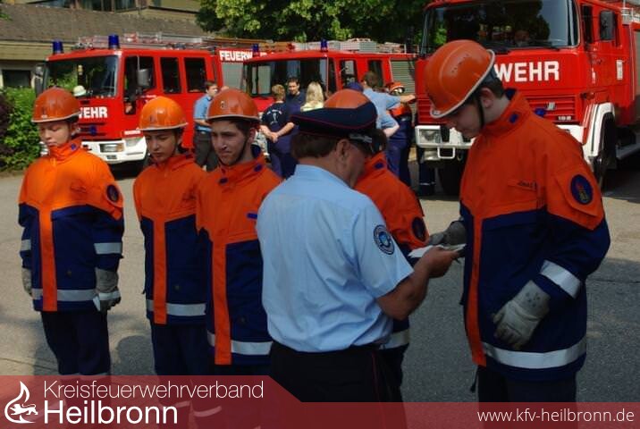 Zum zweiten Mal wurde die Abnahme der Prüfungen zur Jugendflamme 2 parallel zur Abnahme des Leistungsabzeichens der Einsatzabteilungen abgehalten. In Nordheim boten sich dazu ideale Verhältnisse. So waren die Jugendlichen mächtig stolz, als die Verleihung der Jugenflamme jeweils gemeinsame mit der Überreichung des Leistungsabzeichens statt fand.