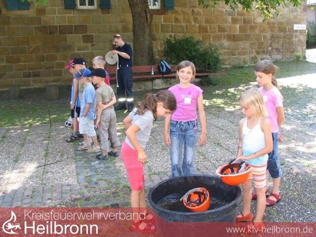 Am Samstag, 04.08.2007 fand wieder das durch die Jugendfeuerwehr Weinsberg organisierte und attraktiv gestaltete Kinderferienprogramm statt. Circa 25 Kinder im Alter von sechs bis zwölf Jahren wollten einmal erleben, was die Feuerwehr in Weinsberg so zu bieten hat. Das sonnige und warme Wetter unterstützte das Vorhaben der Organisatoren, denn wie bei der Feuerwehr üblich, durften Wasserspiele nicht fehlen.
