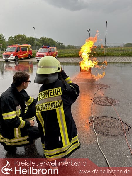 Anschließend konnten erste Erfahrungen mit dem Feuerlöscher gesammelt werden. Damit die Kinder im Ernstfall auch wissen, wie mit dem Feuerlöscher umgegangen wird, durfte dann sogar ein richtiges Feuer gelöscht werden.