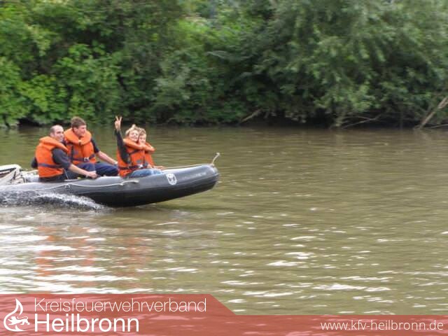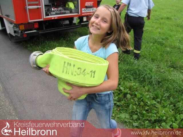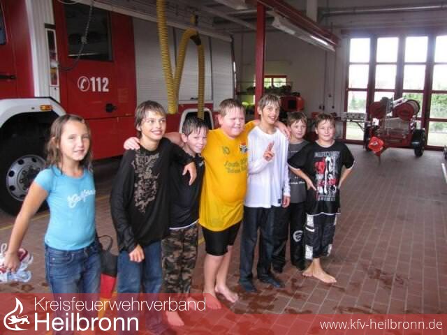 Zu Beginn stand eine Führung durch das Feuerwehrhaus auf dem Programm, wobei die teilnehmenden Kinder u.a. die Funkzentrale, die Fahrzeuge und Einrichtungen und selbstverständlich auch den Jugendfeuerwehrraum in Augenschein nehmen durften. Danach ging es rasch Richtung Kocher, dort durfte mit dem Schlauchboot gefahren werden, weiterhin durfte eine Wasserförderung bewältigt werden. Zurück am Feuerwehrhaus, wurde dann Fußball gespielt, aber nicht auf die gewöhnliche Art, sondern jede Mannschaft bekam zwei C-Rohre mit kräftigem Druck und musste damit den Ball ins gegnerische Tor bugsieren. Danach waren alle "patschnass" bis auf die Haut, aber es hat riesigen Spaß gemacht.
