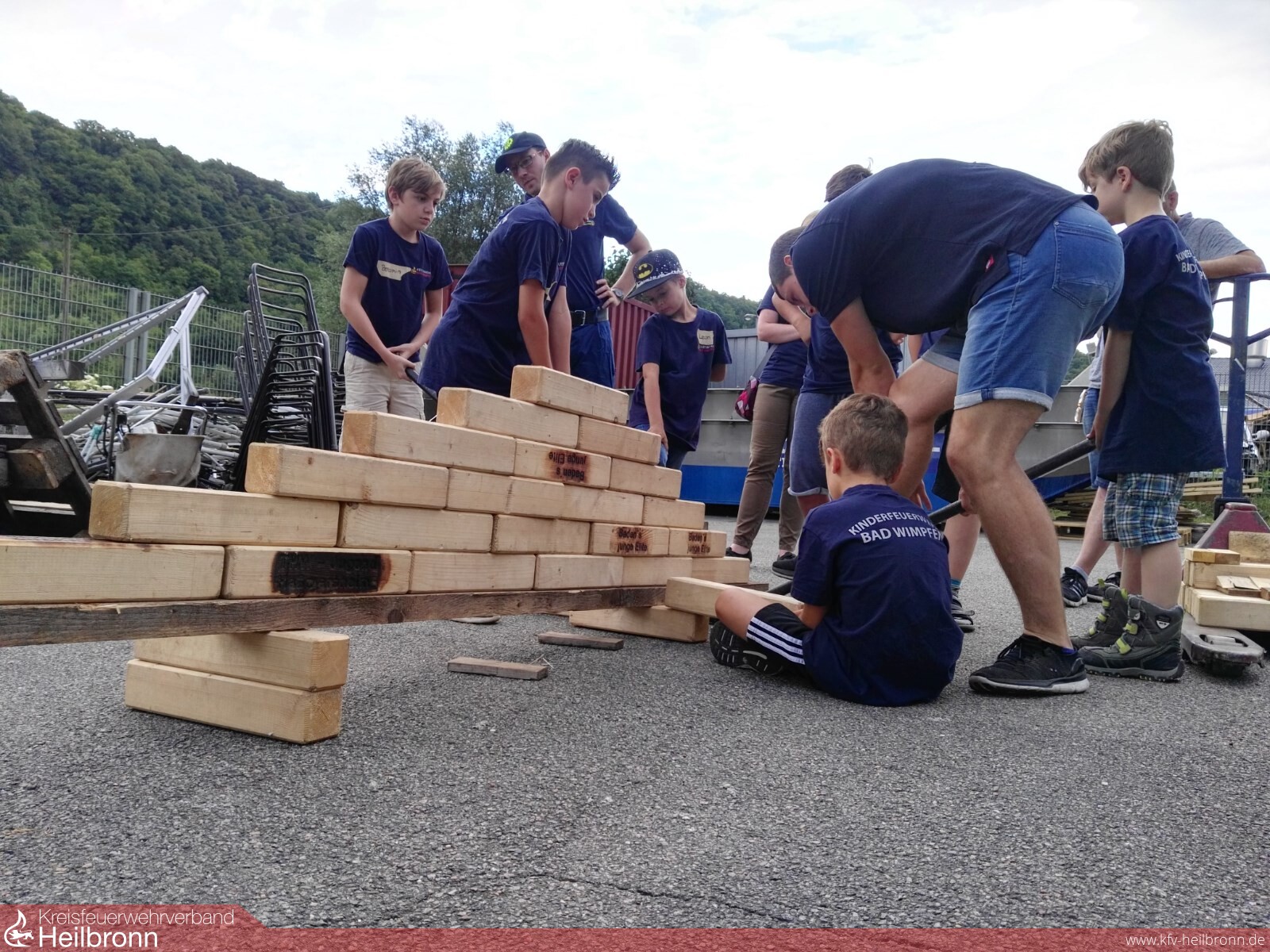 Vor den Sommerferien wollte die Kinderfeuerwehr noch etwas Besonderes erleben. So ging es für die Leiterinnen Jill Lobitz, Franziska Solisch, dem Betreuer Andre Tomse und sieben Kinder der Kinderfeuerwehr zum THW nach Haßmersheim, wo uns Christian Kranz, der Leiter für das Organisatorische beim THW gespannt begrüßte. Auf dem Gelände des THW stand schon der blaue Gerätekraftwagen bereit, der alle Blicke auf sich zog. Bevor es zur weiteren Fahrzeugerkundung ging, schauten wir einen kurzen Film, der die Aufgaben und Einsatzbereiche des THW erläutert. Bei der Besichtigung der Fahrzeuge waren die Kinder besonders vom Mehrzweckponton begeistert. Denn dieses Boot kann so umgebaut und modifiziert werden, dass ein Panzer transportiert werden kann, das sorgte natürlich für viele „WOWs“. Interessant waren auch die anderen Fahrzeuge, auf denen die Kinder durchaus auch Gerätschaften fanden, die sie bereits aus dem Bestand der Feuerwehr Bad Wimpfen kennen. Zum Abschluss zeigten unsere Kinderfeuerwehr bei einem Geschicklichkeitsspiel wie gut sie zusammenarbeiten können. Hierzu musste eine „Wand“ aus losen, aufeinandergestapelten Holzklötzen in einem Stück versetzt werden. Nachdem es am Anfang etwas zögerlich voranging, konnte die Aufgabe dann doch erfolgreich bewältigt werden. Ein großes Dankeschön an Christian Kranz, der uns einen spannenden und lehrreichen Einblick in die Arbeit des THW ermöglicht hat!