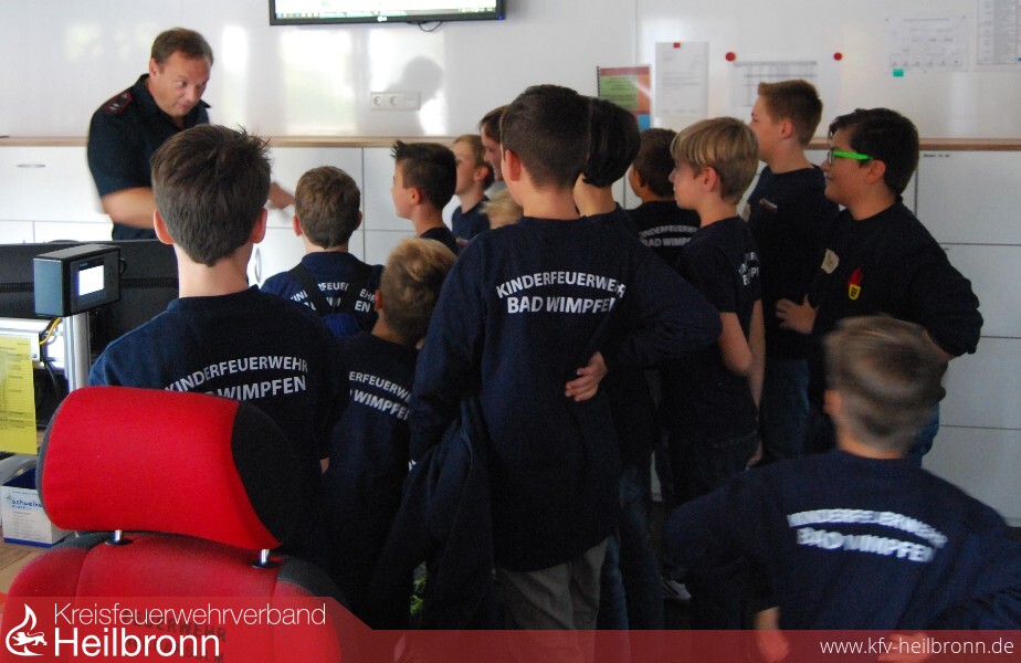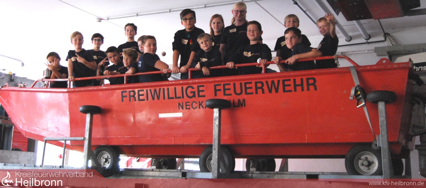 Im ersten Dienst nach den Sommerferien ging es für die Kinderfeuerwehr zur befreundeten Feuerwehr nach Neckarsulm. Vollbesetzte Mannschaftstransportwagen mit 14 Jungs und drei Betreuerinnen wurden vom Neckarsulmer Kameraden Torsten Rönisch in Empfang genommen.