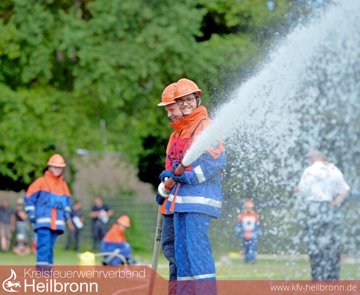 Feuerwehrautos aus Stadt- und Landkreis Heilbronn besetzen die Parkpkätze am Schul- und Sportzentrum. In ihnen wurden die Nachwuchshoffnungen der Wehren nach Schwaigern gebracht. Unter den strengen Augen der Wertungsrichter zeigen sie zum Beispiel, wie ein Löschangriff auszusehen hat. Zügigen Schrittes, aber nicht rennend, rollt ein Fünfer-Team Schläuche ab, verbindet sie mit Hydrant und Strahlrohr. „Verteiler Wasser marsch“, ruft ein behelmter Junge über den Platz. Genau so muss es sein. „Klare, verständliche Kommunikation“, sagt Kreisjugendwart Timo Kraft aus Lauffen. Er erklärt auch, warum nicht gerannt werden darf: damit im Ernstfall keine Unfälle passieren.