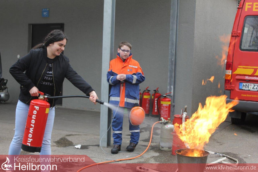 Am Aktionstag haben wir uns mit einer kleinen Fahrzeug und Bilderausstellung, sowie mit dem Löschen von echtem Feuer mit unseren Wasserlöschern als großes Highlight im Schulhof in Szene gesetzt.