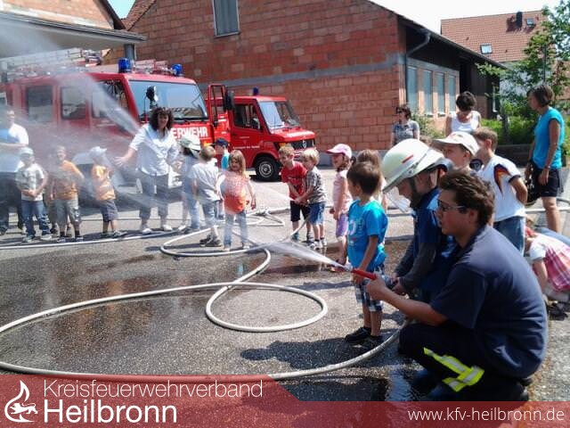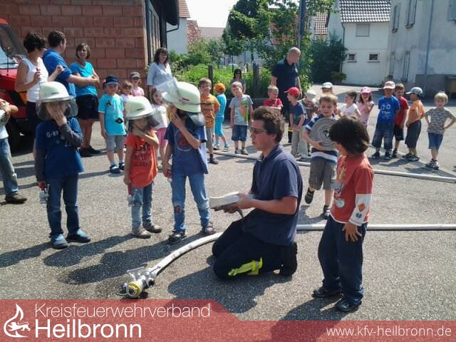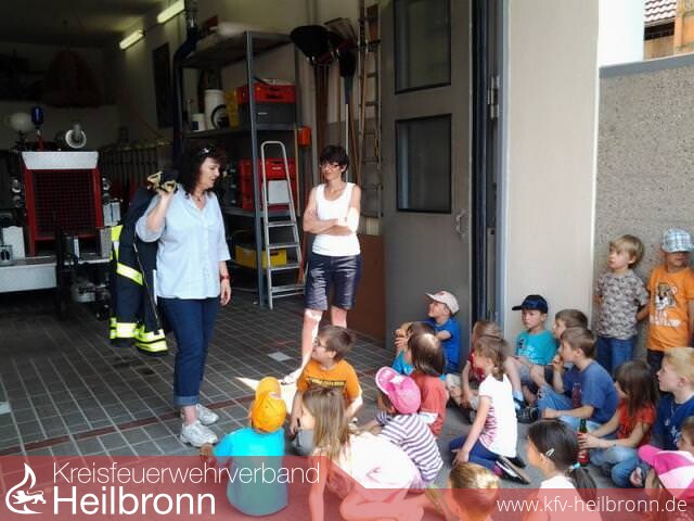 Am Donnerstag den 24. Mai machte sich eine große Gruppe vom Stettener Kindergarten auf den Weg zum Feuerwehrmagazin in Stetten. Unter der Leitung von Erzieherin Ingrid Müller waren die Kinder sehr gespannt was sie beim der Feuerwehr erwartete.
