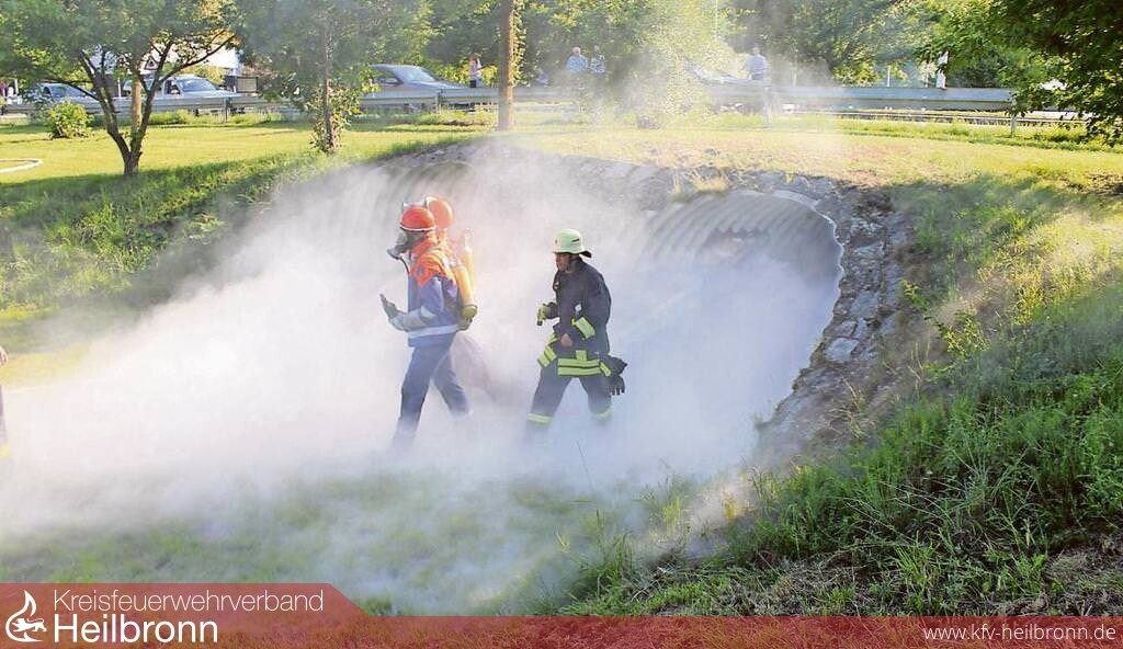 Qualm Der Langenbrettacher Einsatzleiter Timo Steeb und sein Team hatten allerhand vorbereitet. Um 18 Uhr ging es los. Ein Brand auf dem Parkplatz vor dem Langenbeutinger Freibad war gemeldet worden. Damit es auch ordentlich qualmte, hatte Benjamin Steeb ein Feuer angezündet und in den Hochwasserröhren neben der Brettach eine Nebelmaschine gestartet.