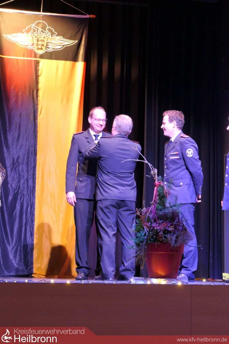 Der Vorsitzende des Kreisfeuerwehrverbandes Heilbronn, Frank Pitz, bestätigte, dass die Oedheimer Feuerwehr ein anerkannter Teil der Gemeinde mit großer Verbundenheit ist und auch mit den Feuerwehren des Kreises gut vernetzt ist. Die Arbeit der Freiw. Feuerwehr ist gefährlich, trotzdem sind diese da, wenn sie gebraucht werden. Es ist beachtlich, was hier geleistet wird, aber die Erwartungshaltung der Bevölkerung ist sehr hoch. Auch hinsichtlich der kritischen Infrastruktur wird sich die Rolle der Feuerwehr verändern, die mit über 98 % ehrenamtlichen Feuerwehrangehörigen abgedeckt wird.