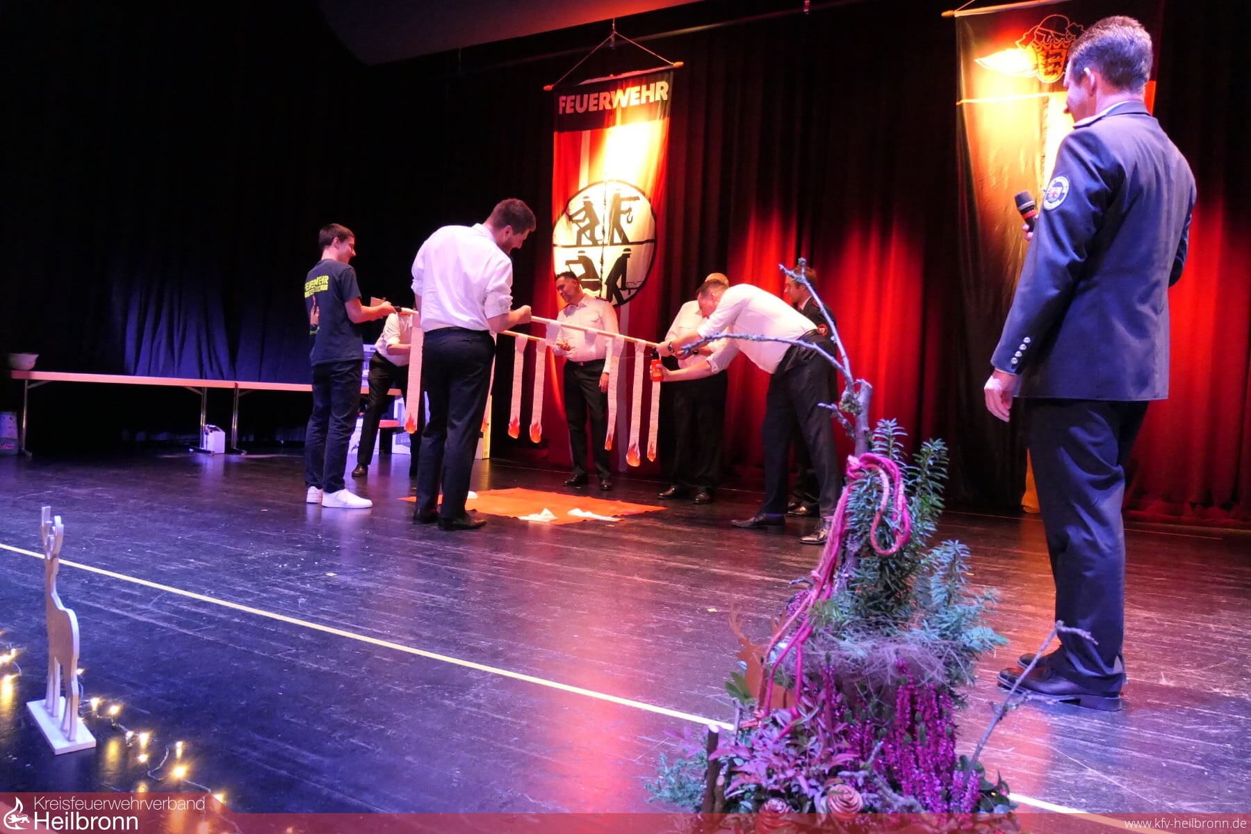 Oedheim Der diesjährige Kameradschaftsabend der Freiwilligen Feuerwehr Oedheim in der festlich geschmückten und voll besetzten Kochana stand wiederum im Zeichen der Auszeichnung von verdienten Feuerwehrleuten für deren Engagement über viele Jahre im ehrenamtlichen Einsatz für die Feuerwehr. Neben dem Dank für die vielen Stunden im Einsatz und Übungsdienst für die FeuerwehrkameradInnen und deren Partner und Familien sorgen das tolle Büfett und ein heiteres Programm dafür, dass der Abend für alle sehr kurzweilig, spannend und auch sehr unterhaltsam verlief.