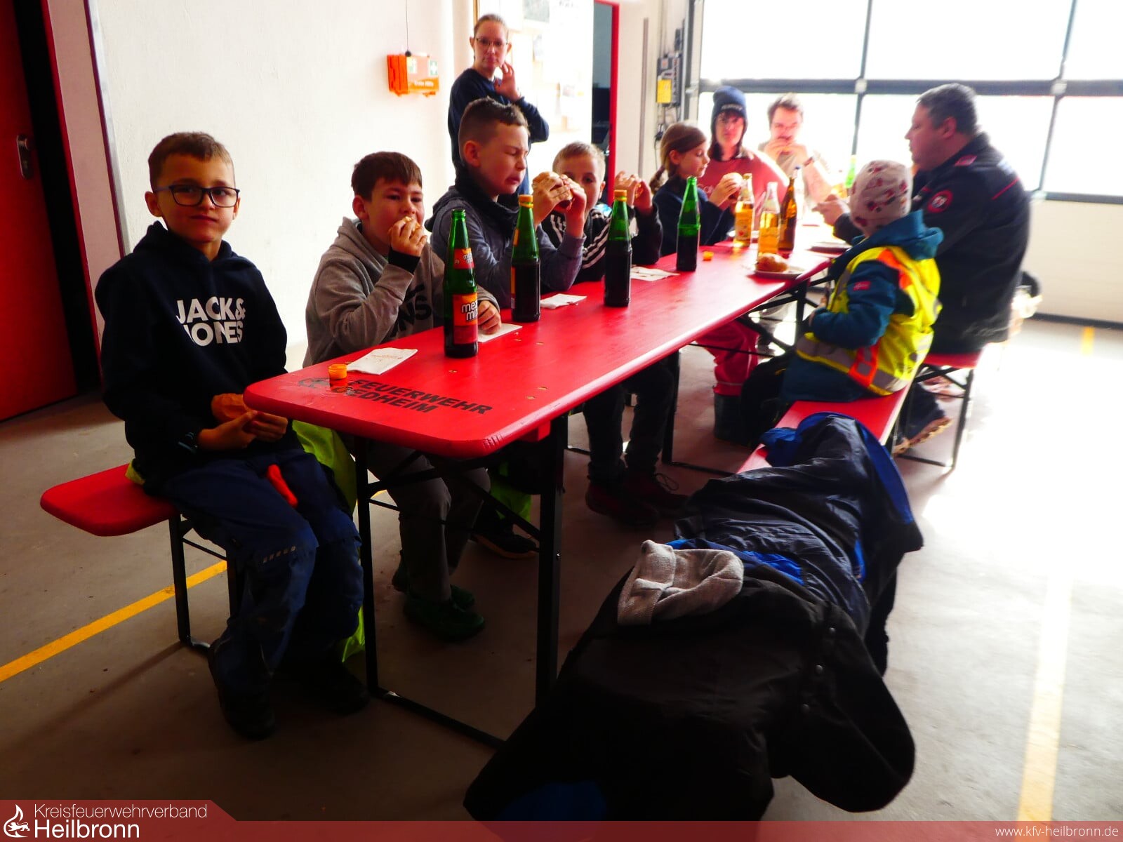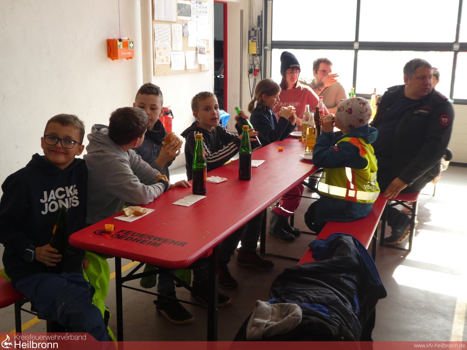 Nach geleisteter Arbeit trafen sich alle Helfer gemeinsam zu einem abschließenden Imbiss im Gerätehaus der Feuerwehr Oedheim und ließen den Tag gemeinsam ausklingen. Bürgermeister Matthias Schmitt bedankte sich bei allen Beteiligten, insbesonders aber bei den vielen Kindern und Jugendlichen mit dem Imbiss im Oedheimer Feuerwehrhaus, der von den Feuerwehrkameraden der Freiw. Feuerwehr Oedheim organisiert wurde.