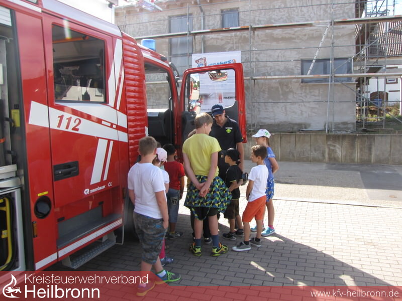 Zum diesjähigen Kinderferienprogramm traffen sich alle 30 teilnehmenden Kinder am Samstag, den 15. August im Feuerwehrgerätes der Freiwilligen Feuerwehr Oedheim. Mit voller Vorfreude, vielen Fragen und großem Interesse an den roten Autos, warteten sie gespannt bis Jugendwart Peter Mall den Startschuss gab. Nun hieß es, an den einzelnen Stationen alles über die Feuerwehr zu erfahren. Wie funktioniert eine Feuerwehr, was sind ihre Aufgaben und wie erreicht man sie?