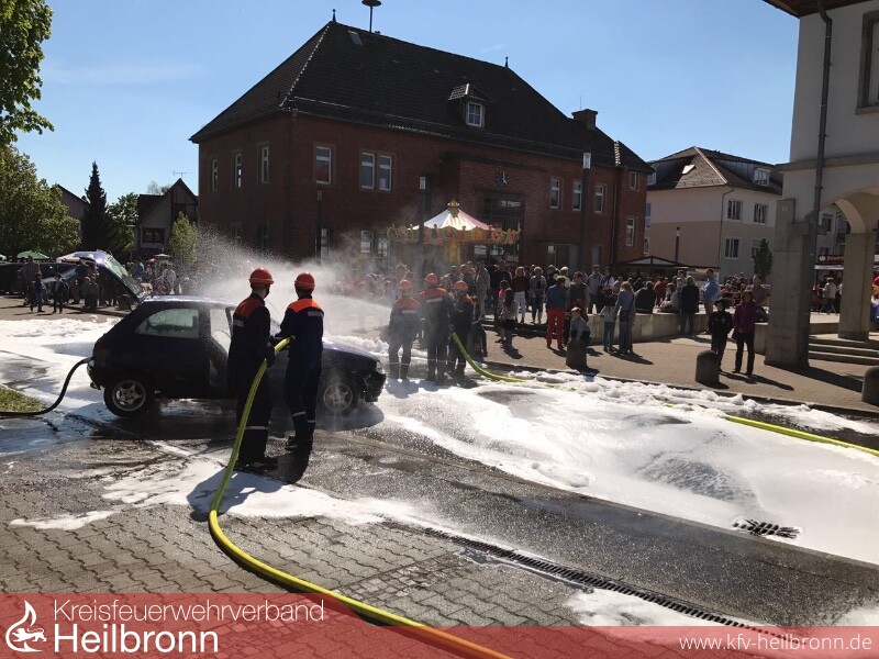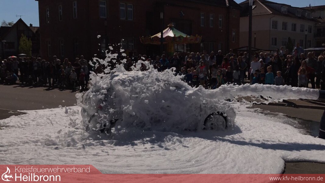 Die Jugendfeuerwehr Gemmingen hat am verkaufsoffenen Sonntag am 30.4 für die Bevölkerung eine Schauübung durchgeführt. Hierzu haben wir ein Fahrzeugbrand simuliert und mit Übungsschaum gelöscht.