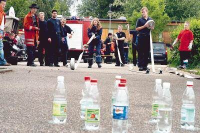 Die Heilbronner Feuerwehrjugend marschiert unterdessen im Gänsemarsch über den Fußballplatz: „Links, zwo, drei, vier.“ Vielleicht machen sie das nur aus Spaß, vielleicht aber auch, um sich das viele Regenwasser aus den Schuhen zu treten. Wer weiß? Anja Mannsperger von der Brackenheimer Delegation schaut ihnen kopfschüttelnd hinterher: „Ich glaube, die stehen auf Drill.“ Den haben andere zum Siegen gar nicht nötig.