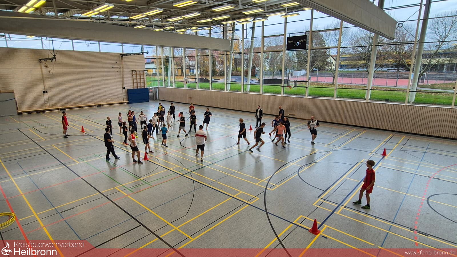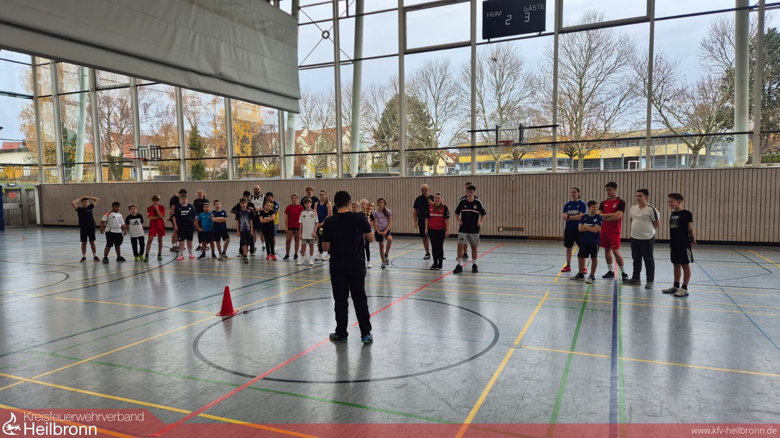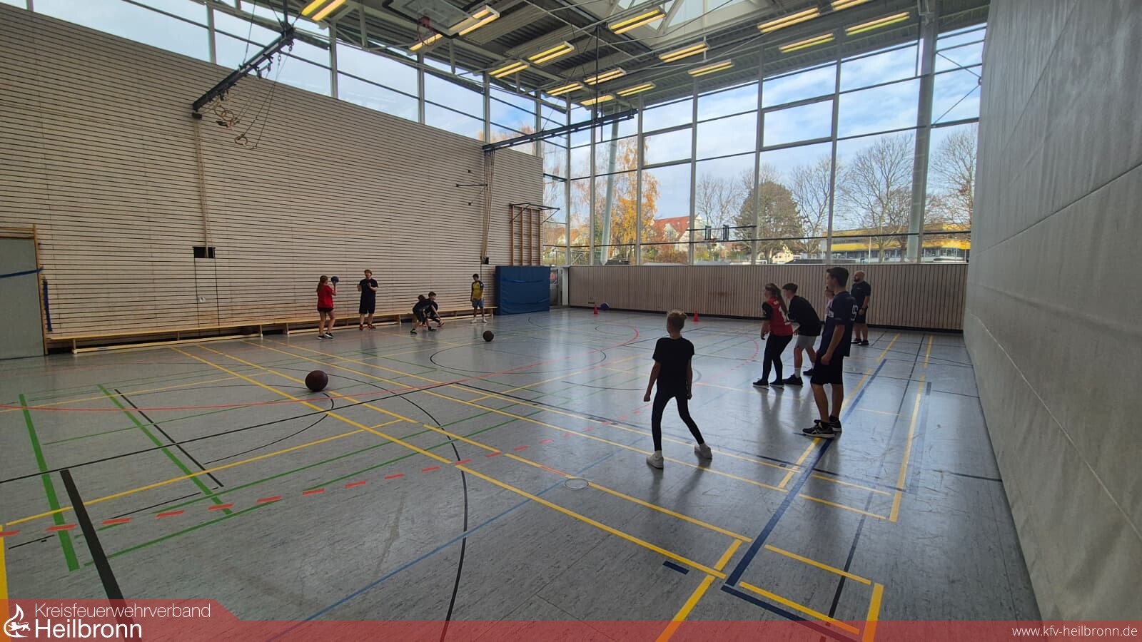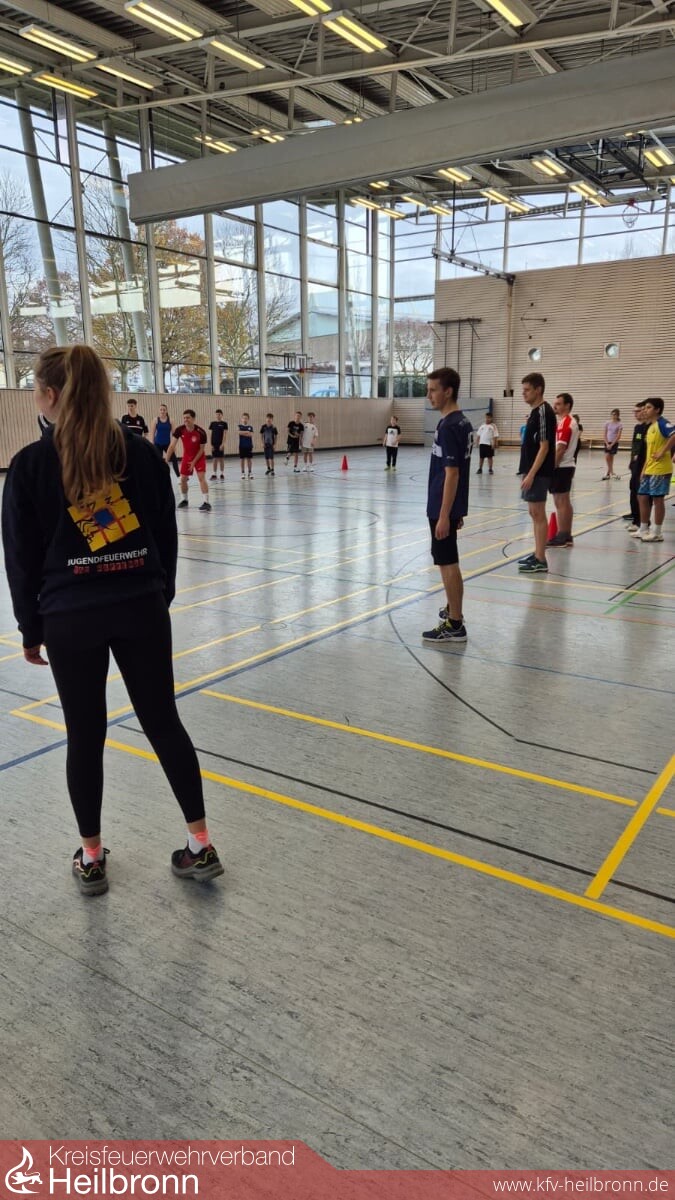Am 15.11.2025 fand in der Kraichgauhalle Bad Rappenau der große Sporttag der Jugendfeuerwehr statt – ein Highlight, auf das sich sowohl unsere Jugendlichen als auch die Betreuer schon lange gefreut haben. Mit 23 hochmotivierten Kindern und 13 engagierten Betreuern traten insgesamt sechs Teams gegeneinander an. In den Disziplinen 10er Ball, Ball über die Linie und Brennball wurde im Turniermodus gekämpft, gejubelt und vor allem eines gezeigt: enormer Sportsgeist – generationenübergreifend, von jung bis alt.