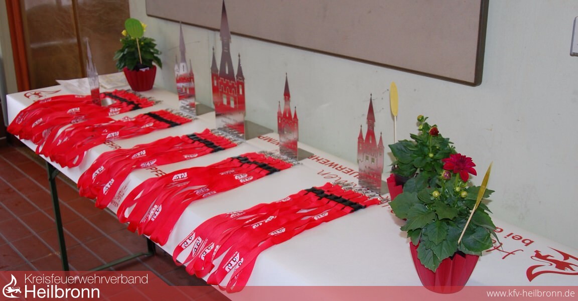 Fünf Stationen hatten die Wimpfener für ihre Gäste vorbereitet. Am Busparkplatz wurde ein Staffellauf mit B-Strahlrohr und Stützkrümmer gelaufen, am Roten Turm musste ein Feuerwehrstiefel gezielt in einen Eimer geworfen werden. Auf dem Blauen Turm war der Geruchssinn gefordert, denn es galt verschiedene Gerüche zu erkennen wie Zimt, Kaffee, Erde, Essig oder Zwiebel. Im Alten Friedhof war die Reaktion beim Erbsenklopfen gefragt, und auf dem Hof des Feuerwehrgerätehauses, das Zielspritzen in ein Fass.