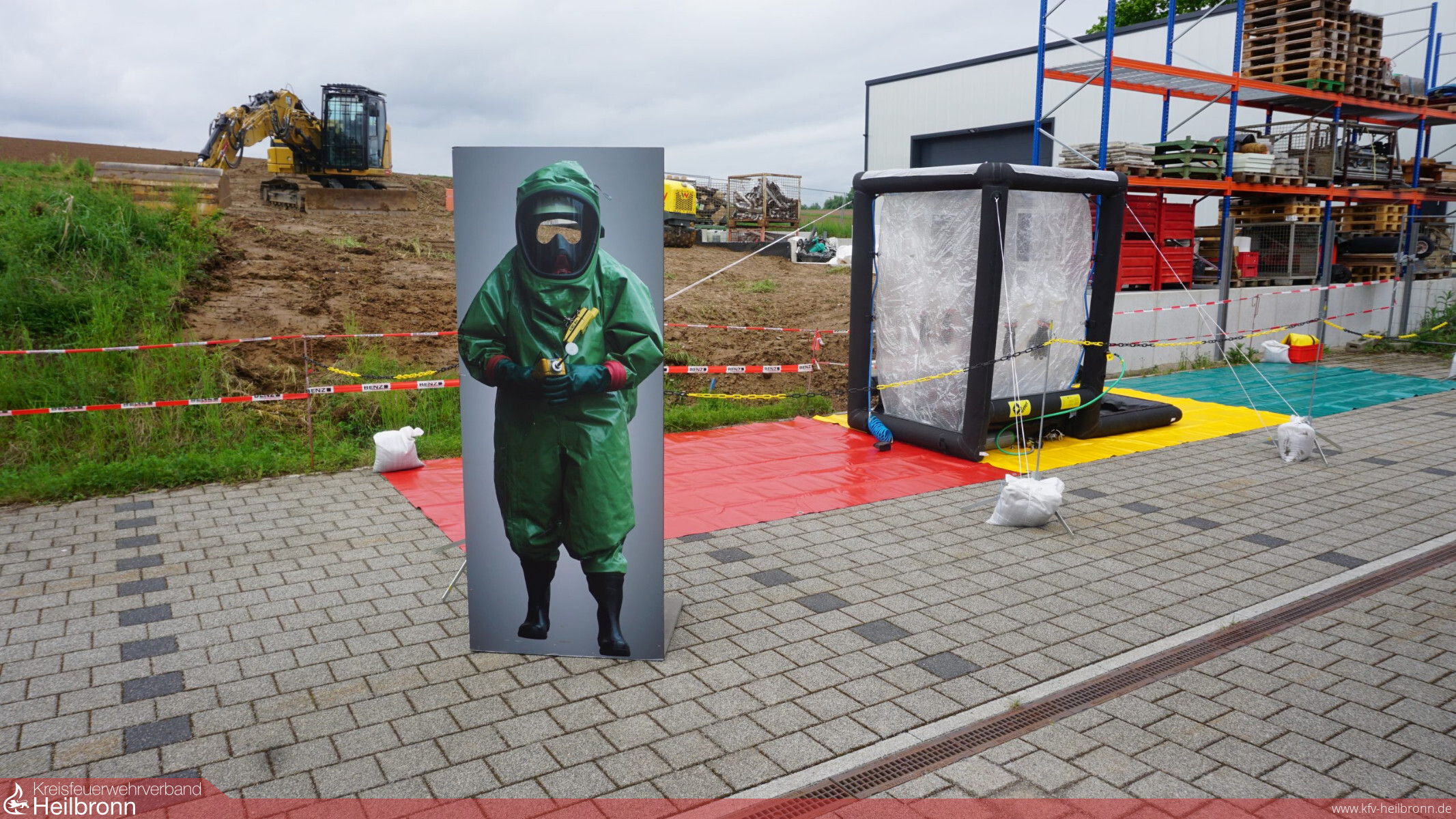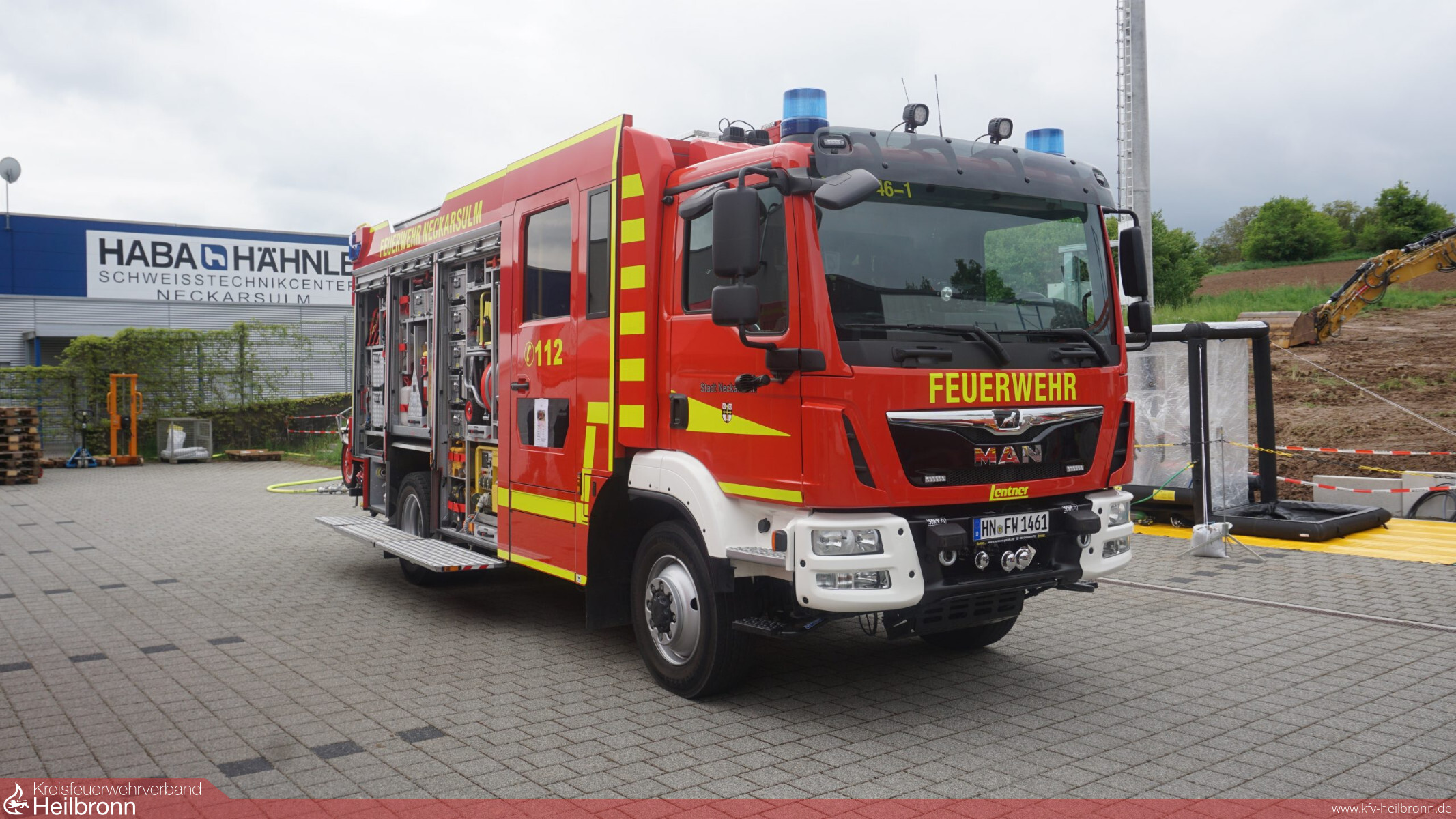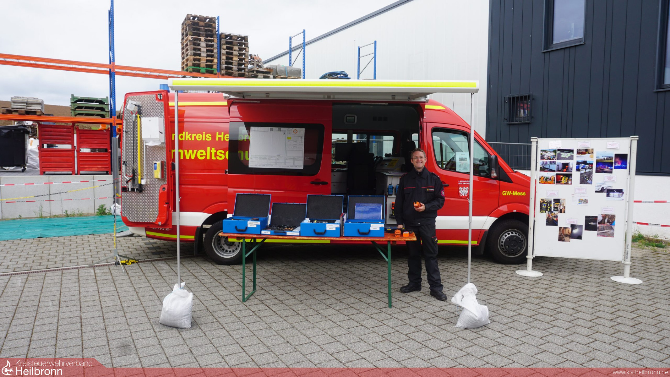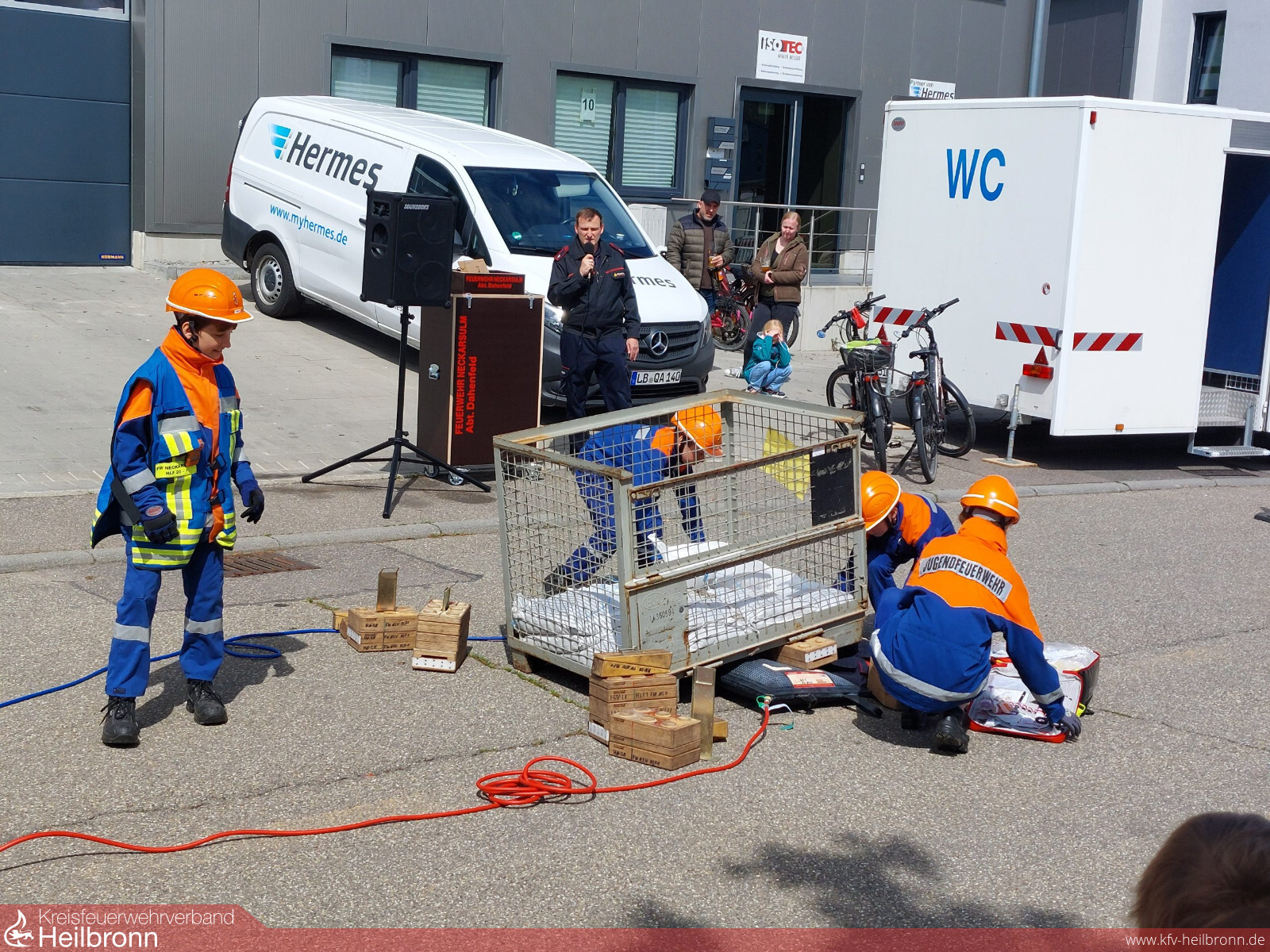 Die Fahrzeuge der Abteilungen Dahenfeld und Neckarsulm stießen am Sonntag, den 4. Mai vor allem bei den kleinen Besuchern auf großes Interesse. Zusätzlich zeigten die Neckarsulmer Kameraden der Fachgruppe Messtechnik alles rund um das Thema Gefahrenabwehr im Bereich Chemie und Umwelt. Des Weiteren fand am Nachmittag bei bestem Frühlingswetter eine Schauübung der Jugendfeuerwehr Neckarsulm statt. Die Jugendlichen zeigten eine Übung zum Thema Technische Hilfeleistung: Eine Übungspuppe war unter einer Sandsackgitterbox eingeklemmt und musste befreit werden. Mit Hebekissen und Rüsthölzer zeigten die Jungen und Mädchen ihr Können und befreiten in kürzester Zeit erfolgreich die Puppe unter der Last. Zusätzlich gab es am Stand der Jugendfeuerwehr leckere Waffeln und im Abrollbehälter Aufenthalt einige Informationen zum Thema „Was tun bei Rauch und Feuer zu Hause“. Hier wurde das Rauchhaus der Brandschutzerziehung des Landkreises Heilbronn vorgeführt.