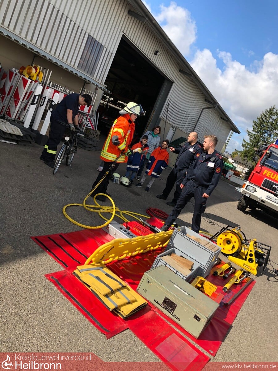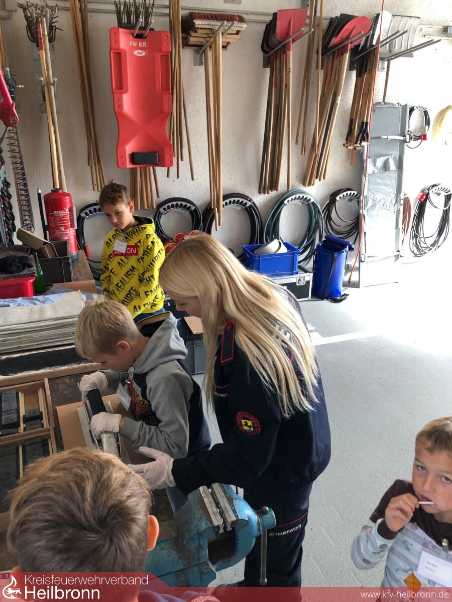 Die teilnehmenden Kinder (und Eltern) hatten in eingeteilten Gruppen mit Jugendleitern und Betreuern die Möglichkeit, Feuerwehrtechnik in Kombination mit Spiel und Spaß zu erleben. So galt es verschiedene Beladungsgegenstände auf einem Löschfahrzeug zu finden und deren Einsatzmöglichkeiten zu überlegen, einen Löschangriff unter Anleitung aufzubauen, mit Schere, Spreizer und Pedalschneider Fahrräder zu „bearbeiten“ oder einen simulierten Notruf mit korrekter Vorgehensweise abzusetzen. Weiterhin wurden den Teilnehmern die verschiedenen Schutzkleidungen und deren Einsatzzwecke erklärt und bei einer Führung durch das Feuerwehrhaus gezeigt, was dort im Einsatzfall passiert, welche Gerätschaften vorgehalten werden oder wie eine Übung vor- und nachbereitet werden muss. Geschicklichkeit war beim Aufbau einer Figur aus Feuerwehrarmarturen und beim Schlauchkegeln gefragt. In der „Schlauchwerkstatt“ hatte jedes Kind die Möglichkeit, seinen Namen auf ein Stück Schlauch zu drucken und diesen als Andenken mit nach Hause zu nehmen. Das Highlight für die meisten Kinder - aber auch Erwachsenen - stellte die Fahrt mit der Drehleiter dar.