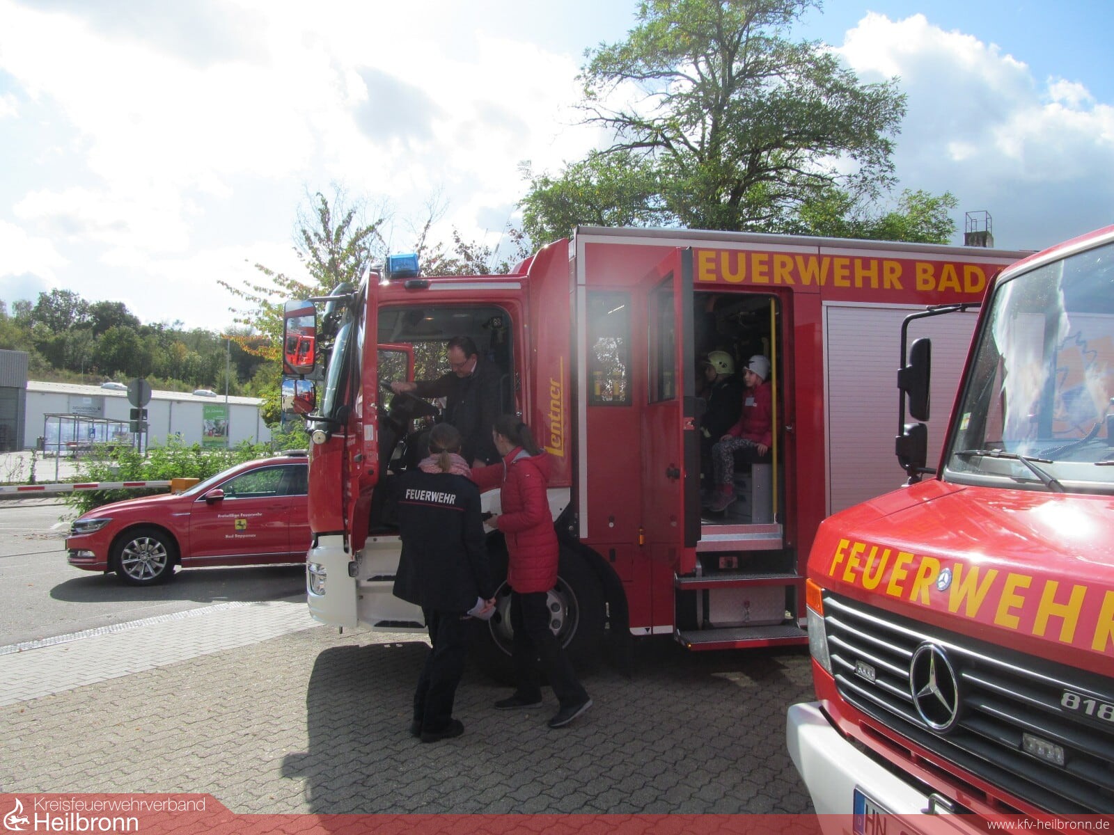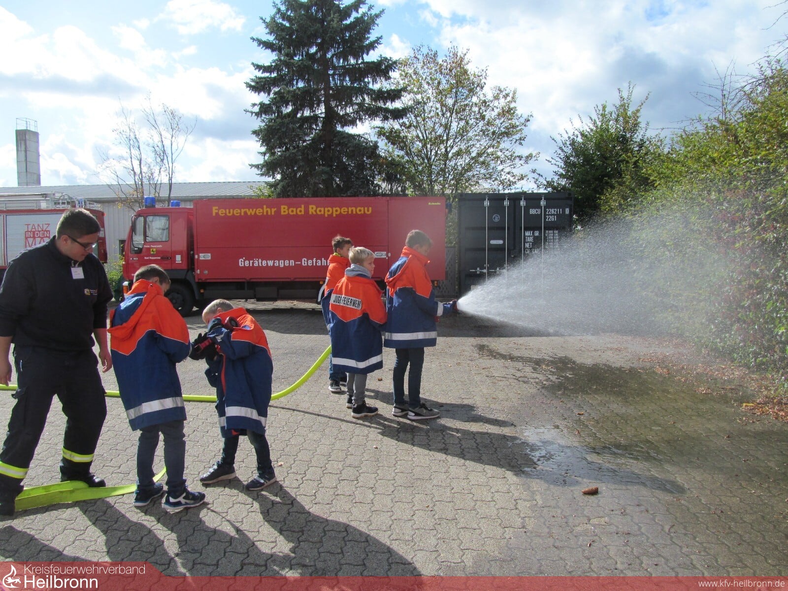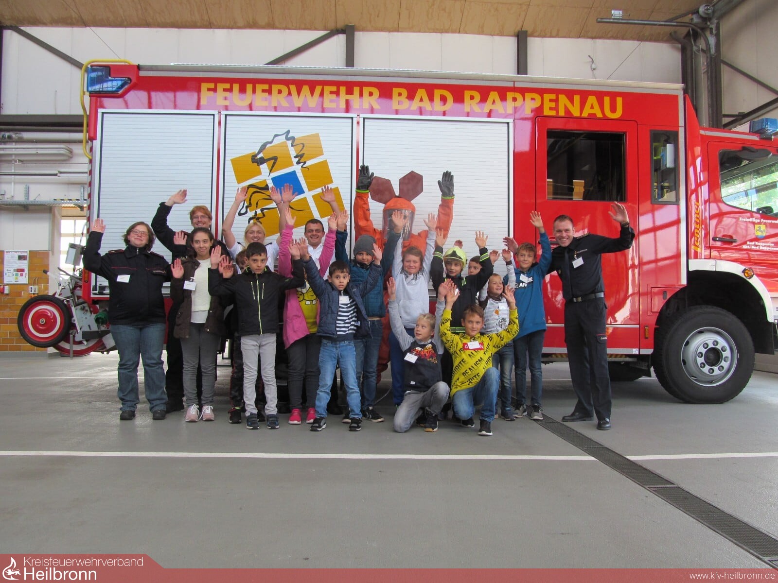 Für die Verpflegung während des Programms, wurden Getränke sowie Kaffee und Kuchen angeboten. Für interessierte Eltern wurde ab 16:30 Uhr ein Elternprogramm von Kommandant Felix Mann angeboten. Darin stellte er die Feuerwehr Bad Rappenau, Aufgaben und Einsatzspektrum, Gefahren im Haushalt und entsprechende Brandschutztipps vor. Nachdem die Kinder alle Stationen durchlaufen hatten, erhielten sie noch eine kleine Präsenttasche mit Luftballons, Schlüsselanhänger, Bastelbögen, Infomaterial zur Jugendfeuerwehr und Brandschutztipps für Klein & Groß, sowie eine Urkunde für die erfolgreiche Teilnahme. Zum gemeinsamen Abschluss trafen sich alle Kinder, Eltern und Betreuer nochmals hinter dem Feuerwehrhaus, wo die Demonstration einer Fettexplosion erfolgte.